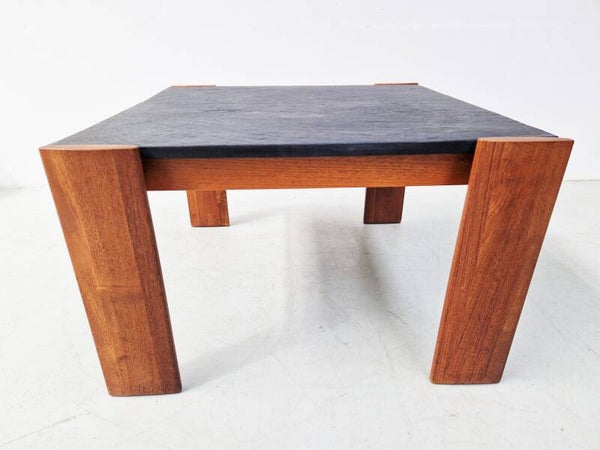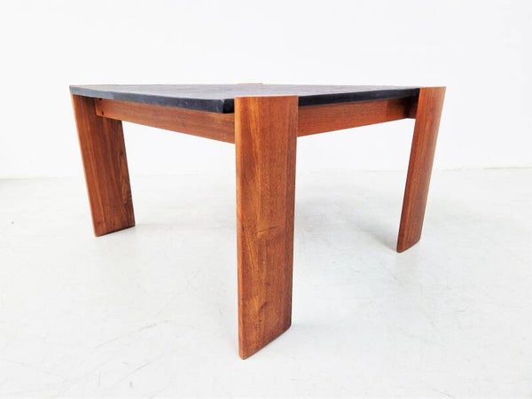 If you like sleek and brutalist, this is a very nice table made of solid wood and a heavy top of slate that still has beautiful coarse lines and structure. Probably Scandinavian in origin. Top condition.