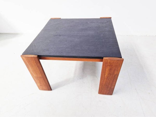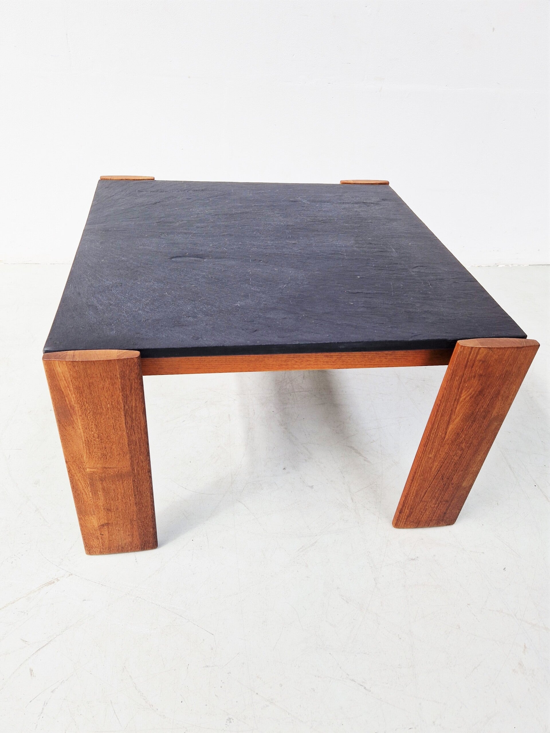 Vintage Brutalist Slate and Teak Coffee Table, 1970s