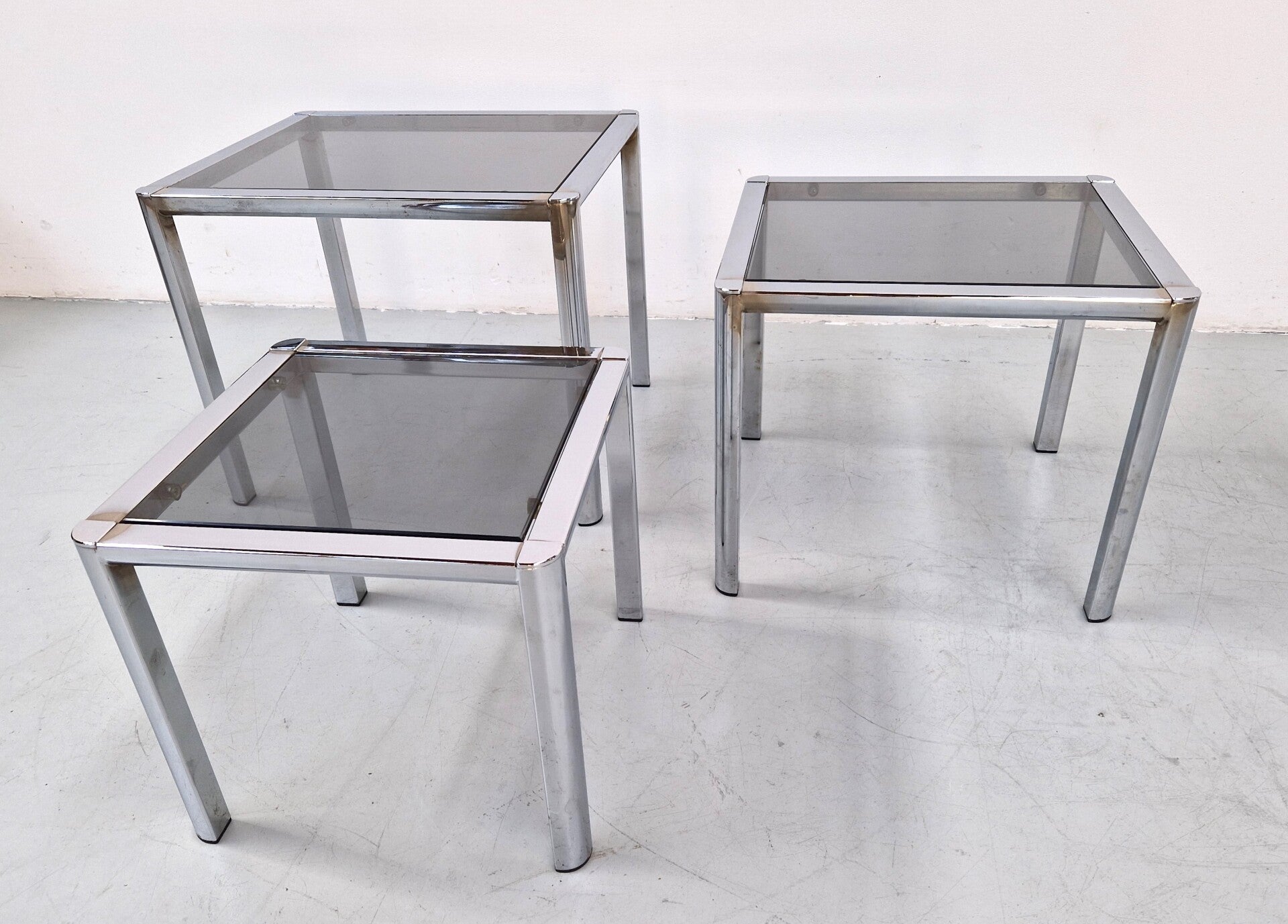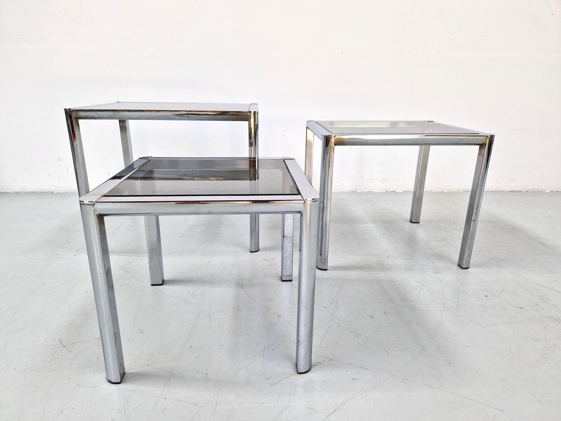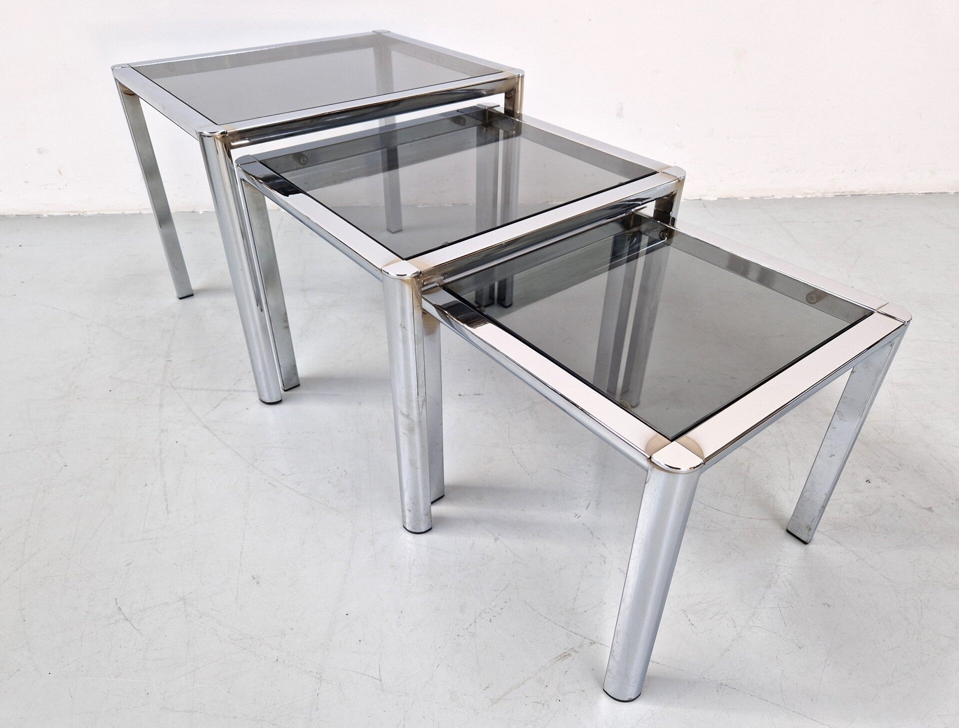 Vintage Chrome and Smoked Glass Nesting Table Set, 1970s
