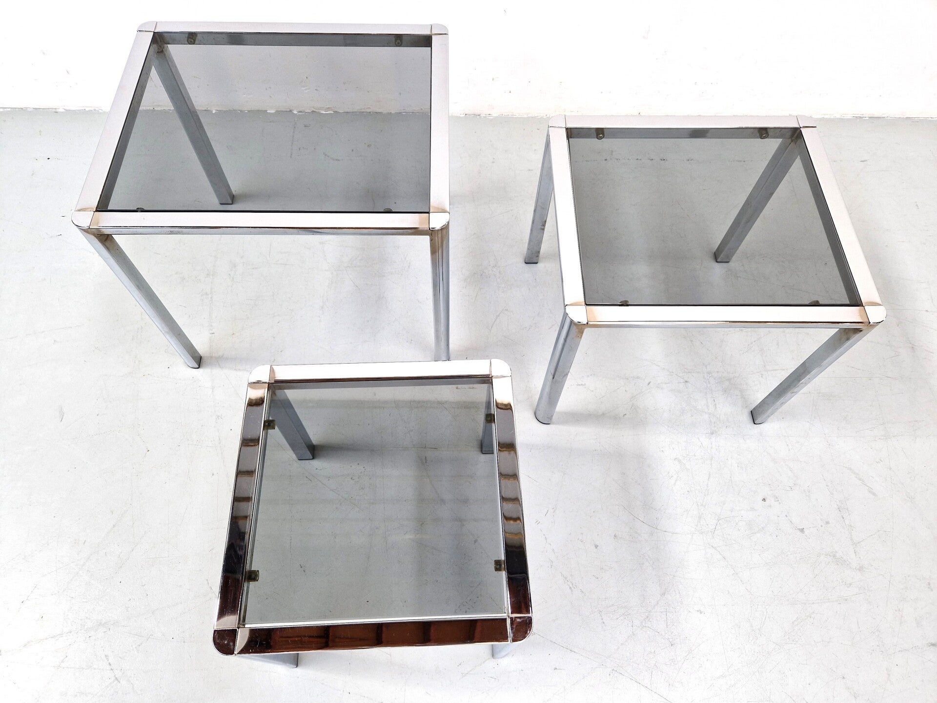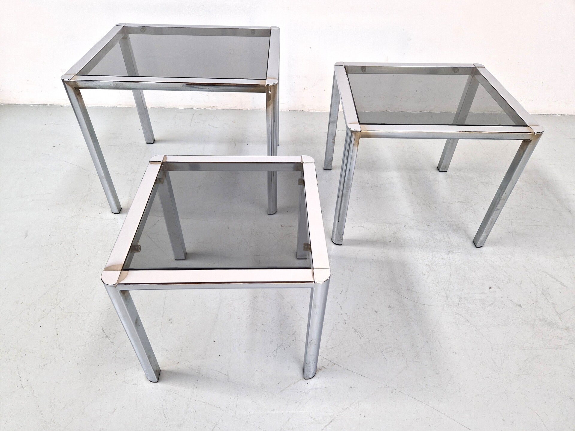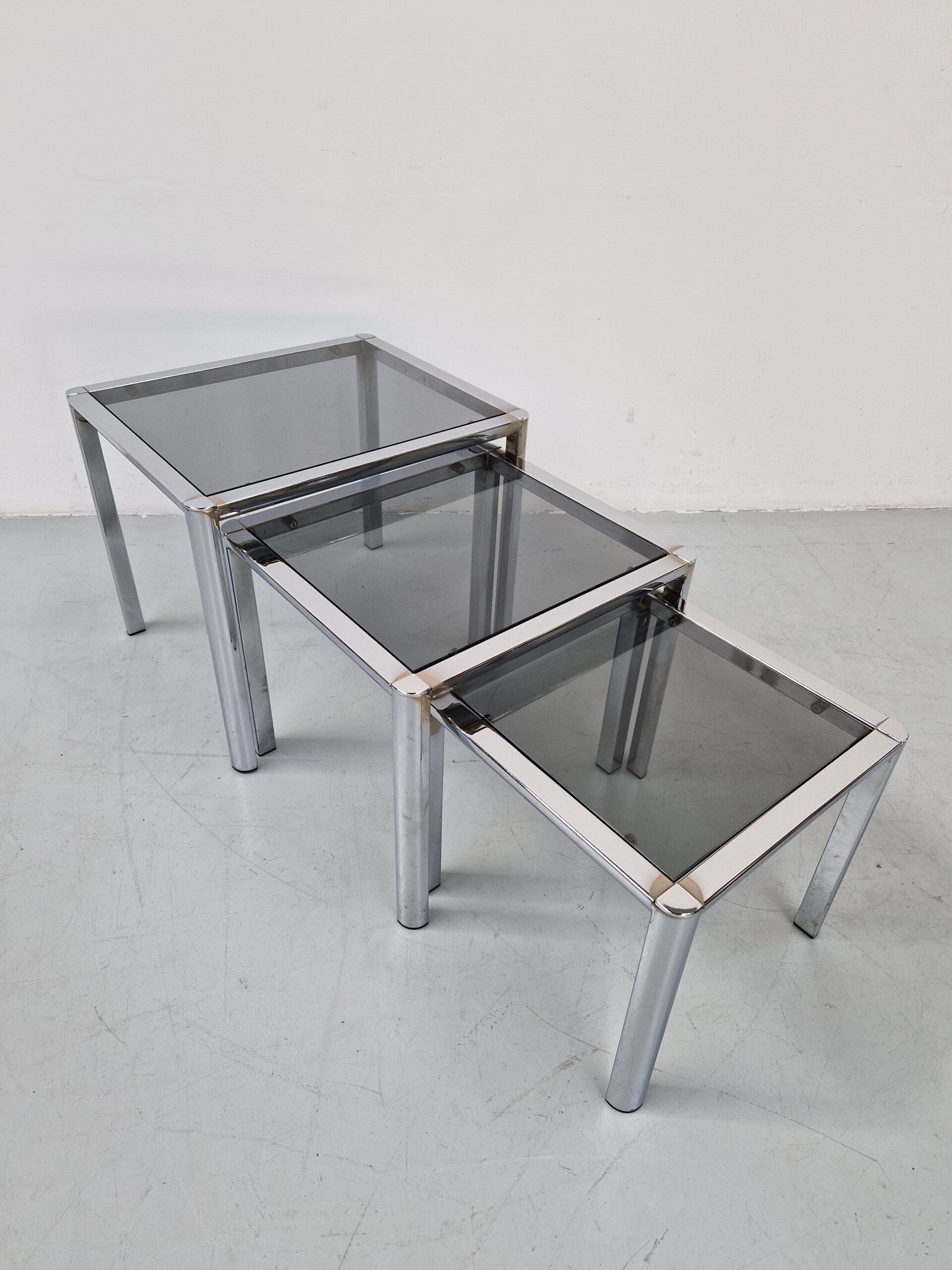 Vintage Chrome and Smoked Glass Nesting Table Set, 1970s