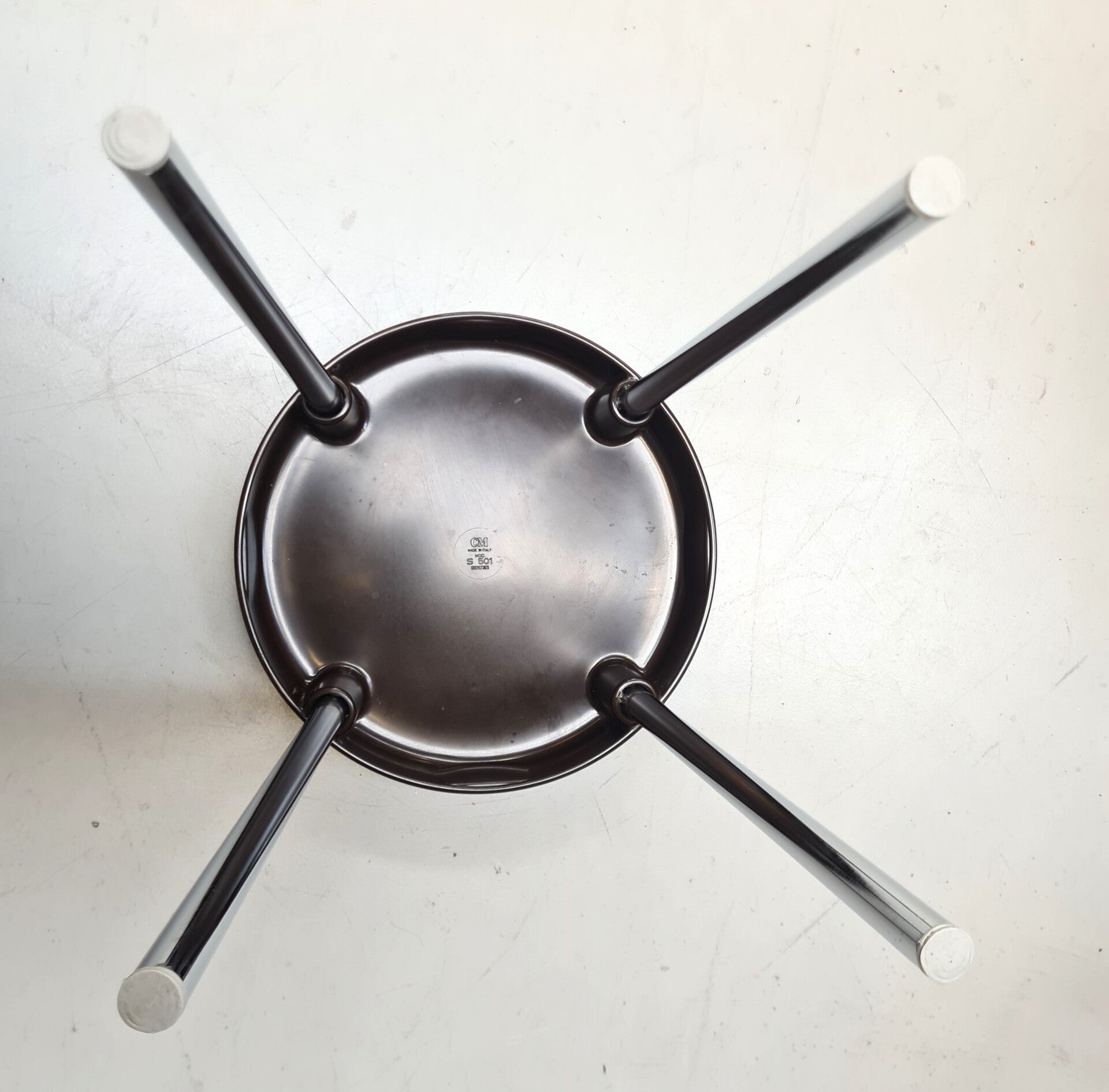 Vintage space age stool with dark brown bakelite seat and steel legs, model S 501 produced by the Italian house Carrara & Matta in the 1970s. Good vintage condition.
