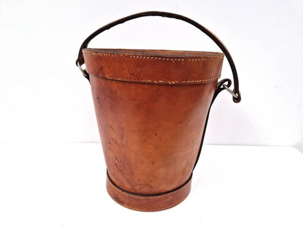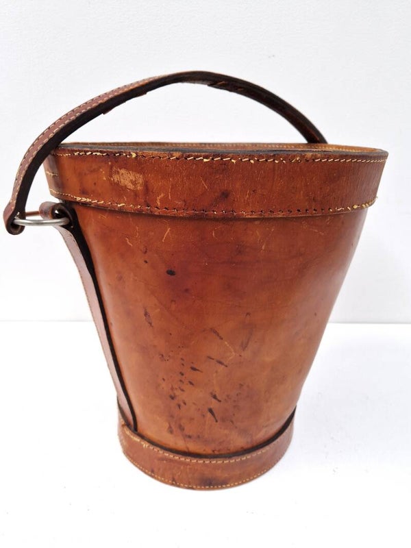Throw away your desk papers in style or collect some wood for the fireplace in this sturdy cognac leather bucket with great patina! Looks great and will last a lifetime.