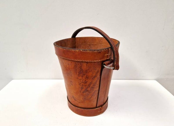 Midcentury Leather Bucket or Waste Bin, 1970s
