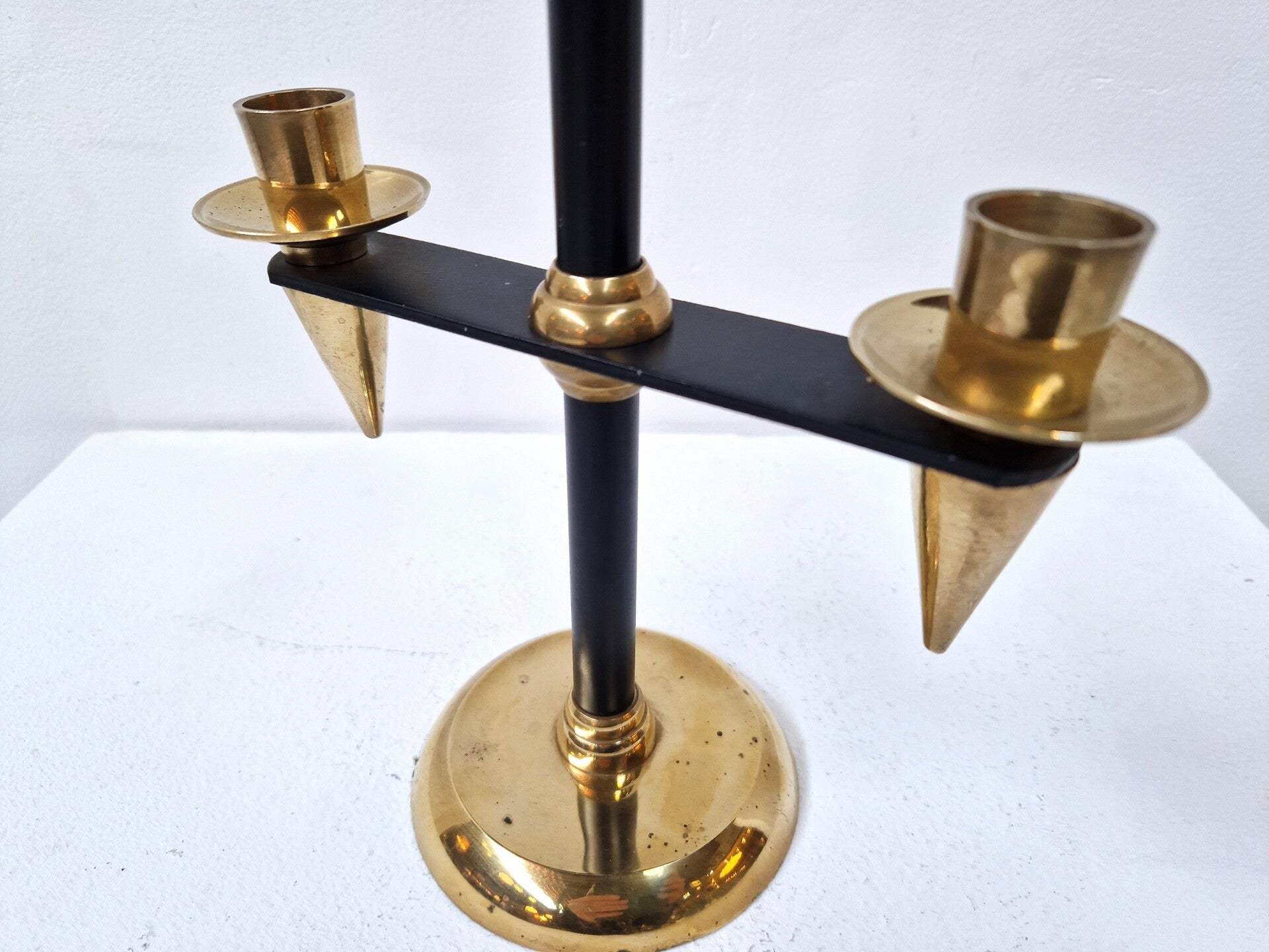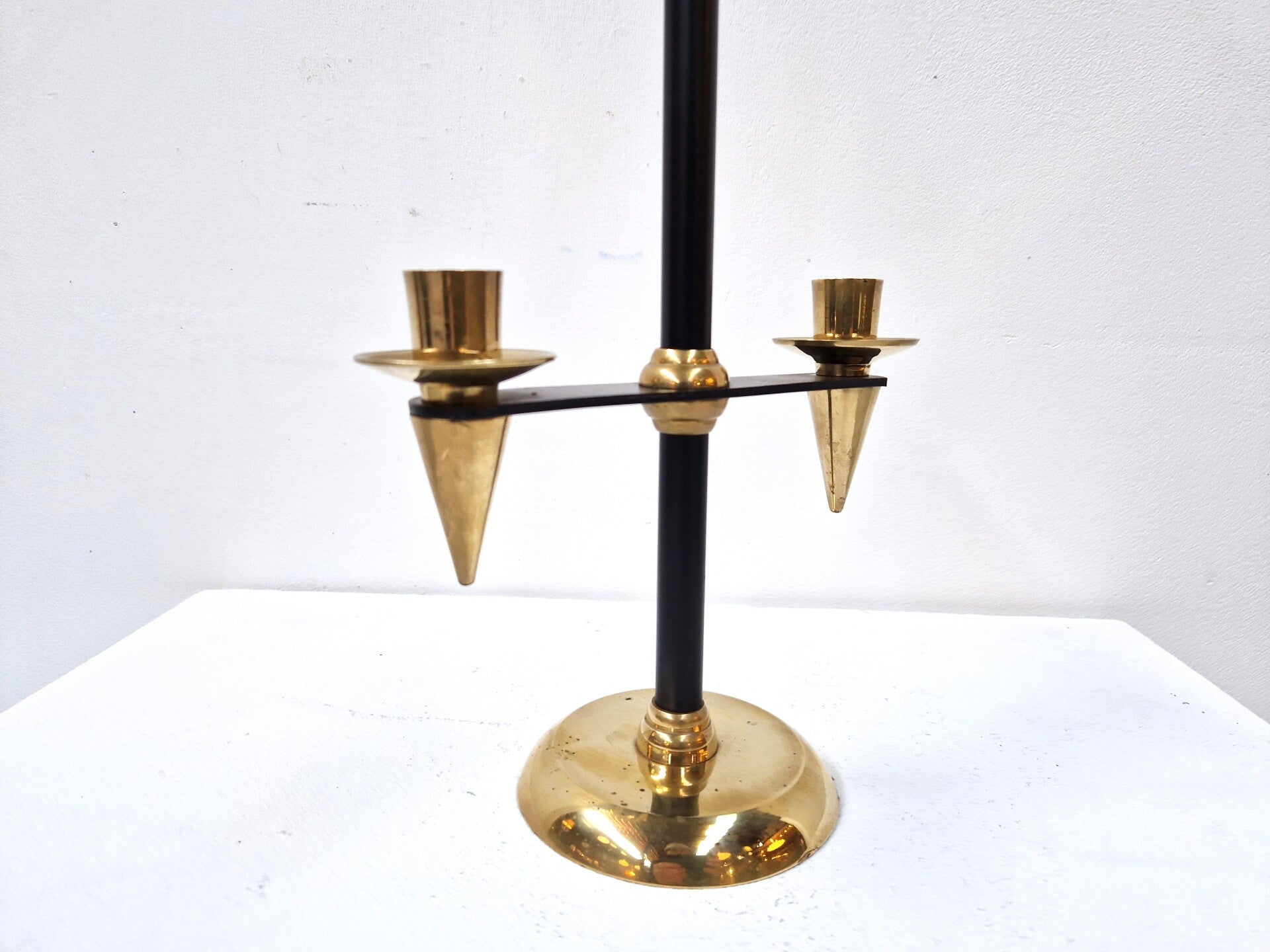 Classy brass and enameled metal Italian candle stick holder, attributed to Gio Ponti and probably made around 1955. It's in great vintage condition with only superficial marks and a nice patina on the brass. See pictures for wear.