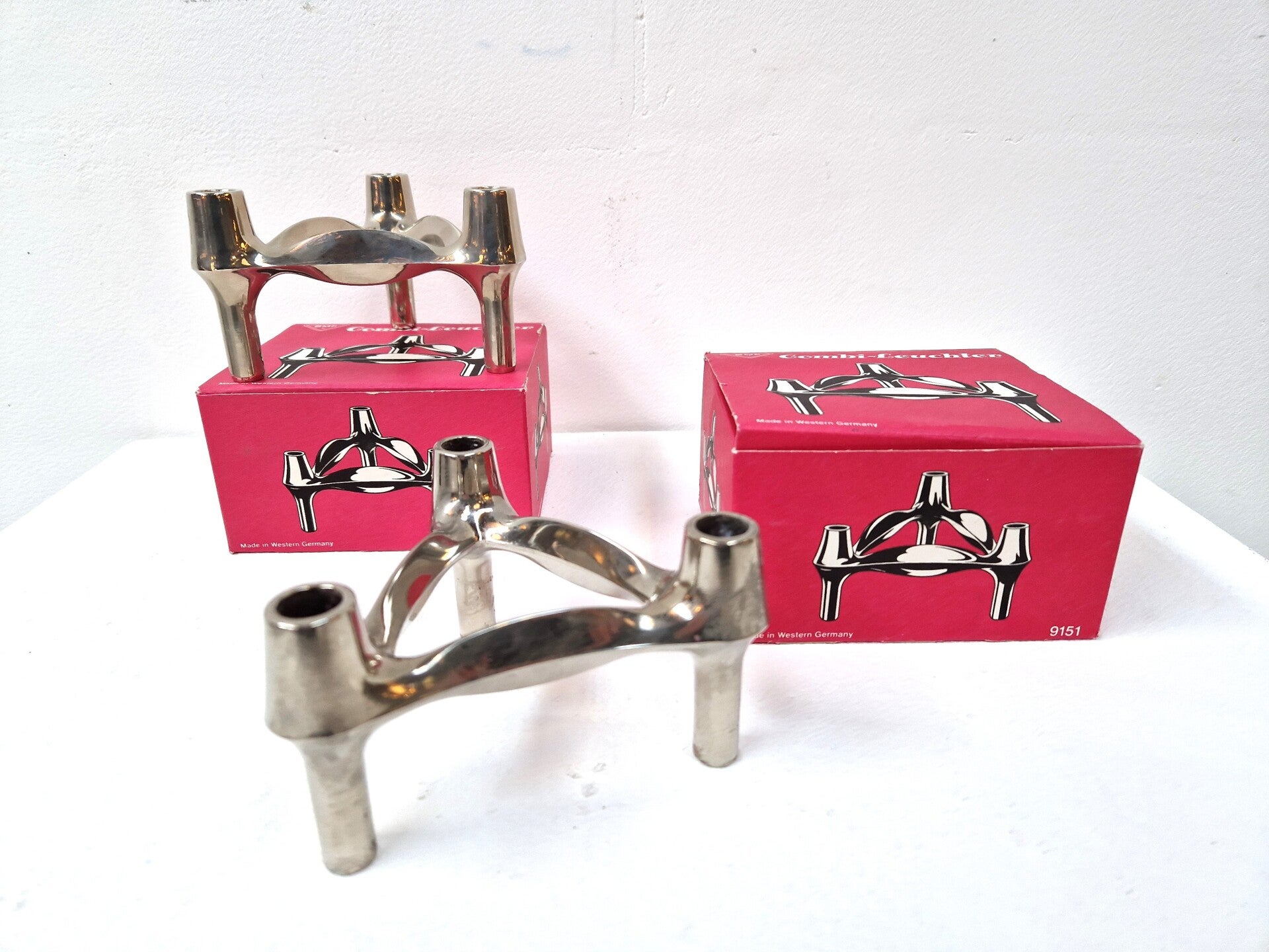 Set of 2 Boxed Fritz Nagel Candlesticks for BMF, 1960s