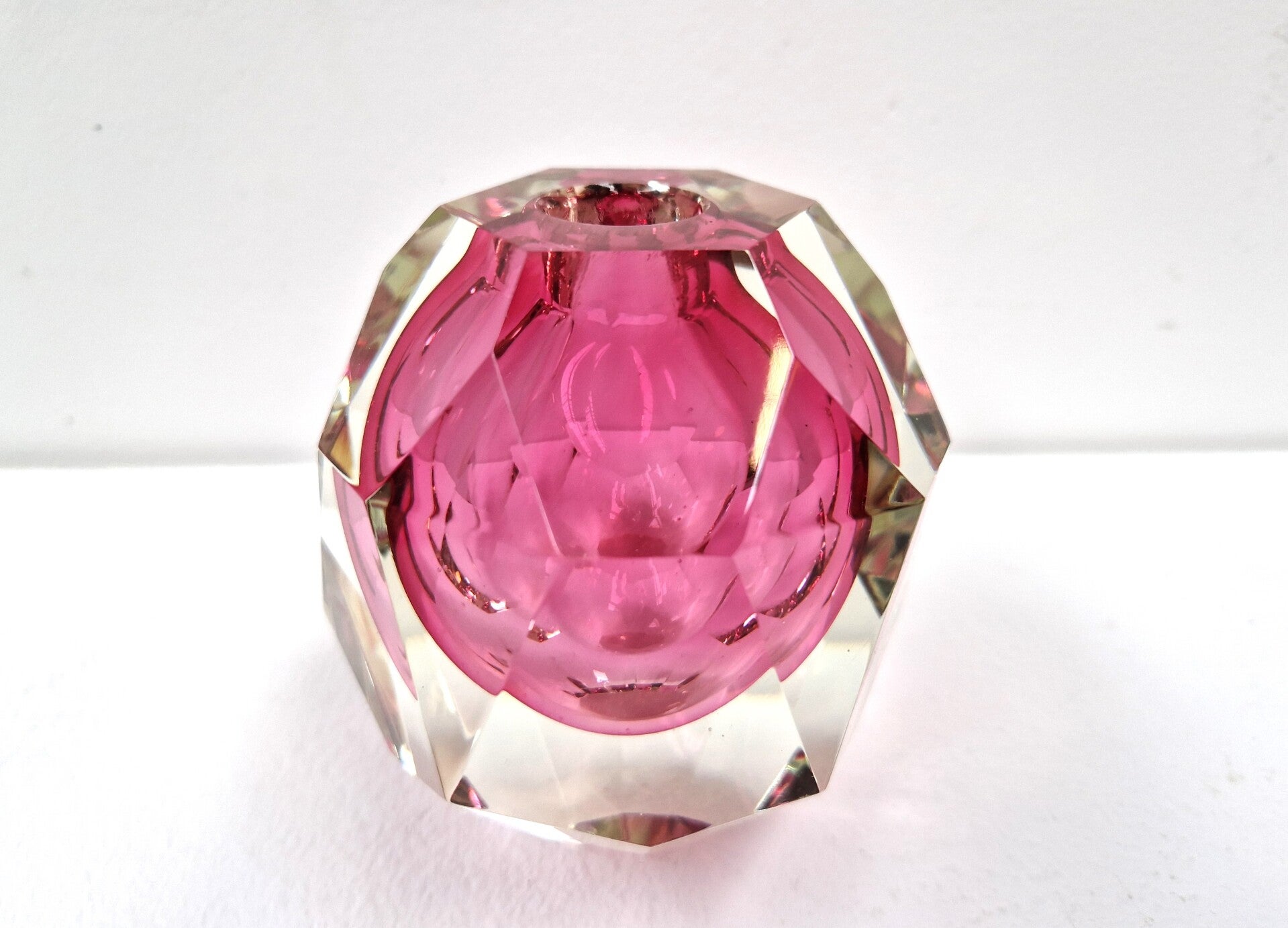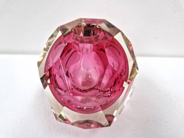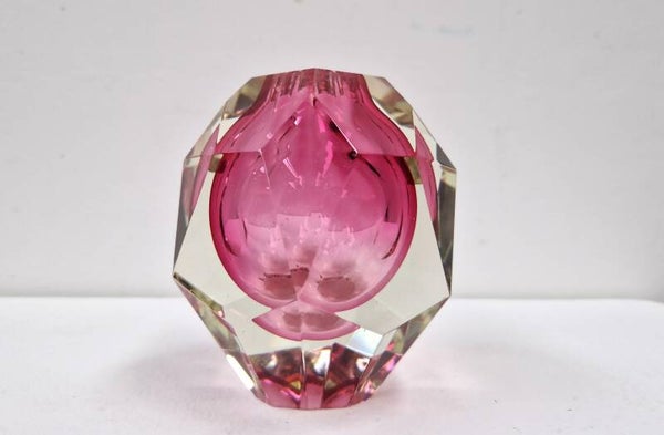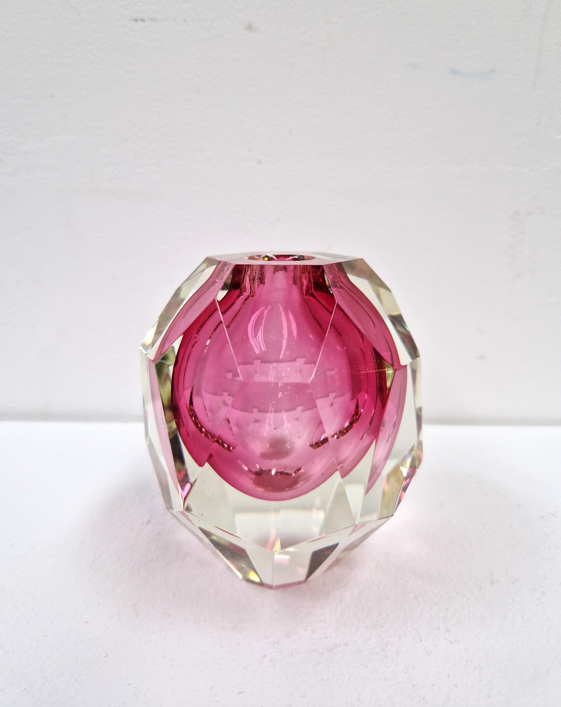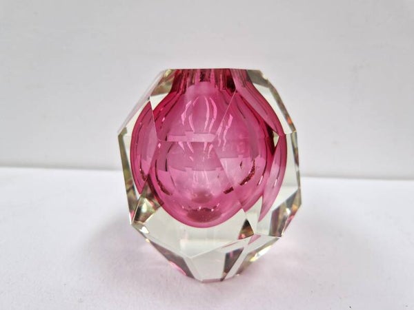 Caged and diamond cut Glass Pink and clear Vase, 1980s