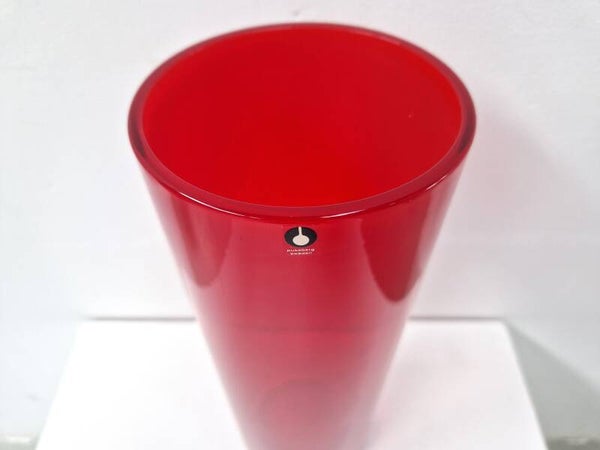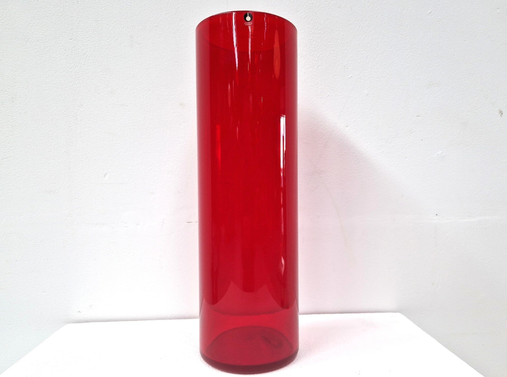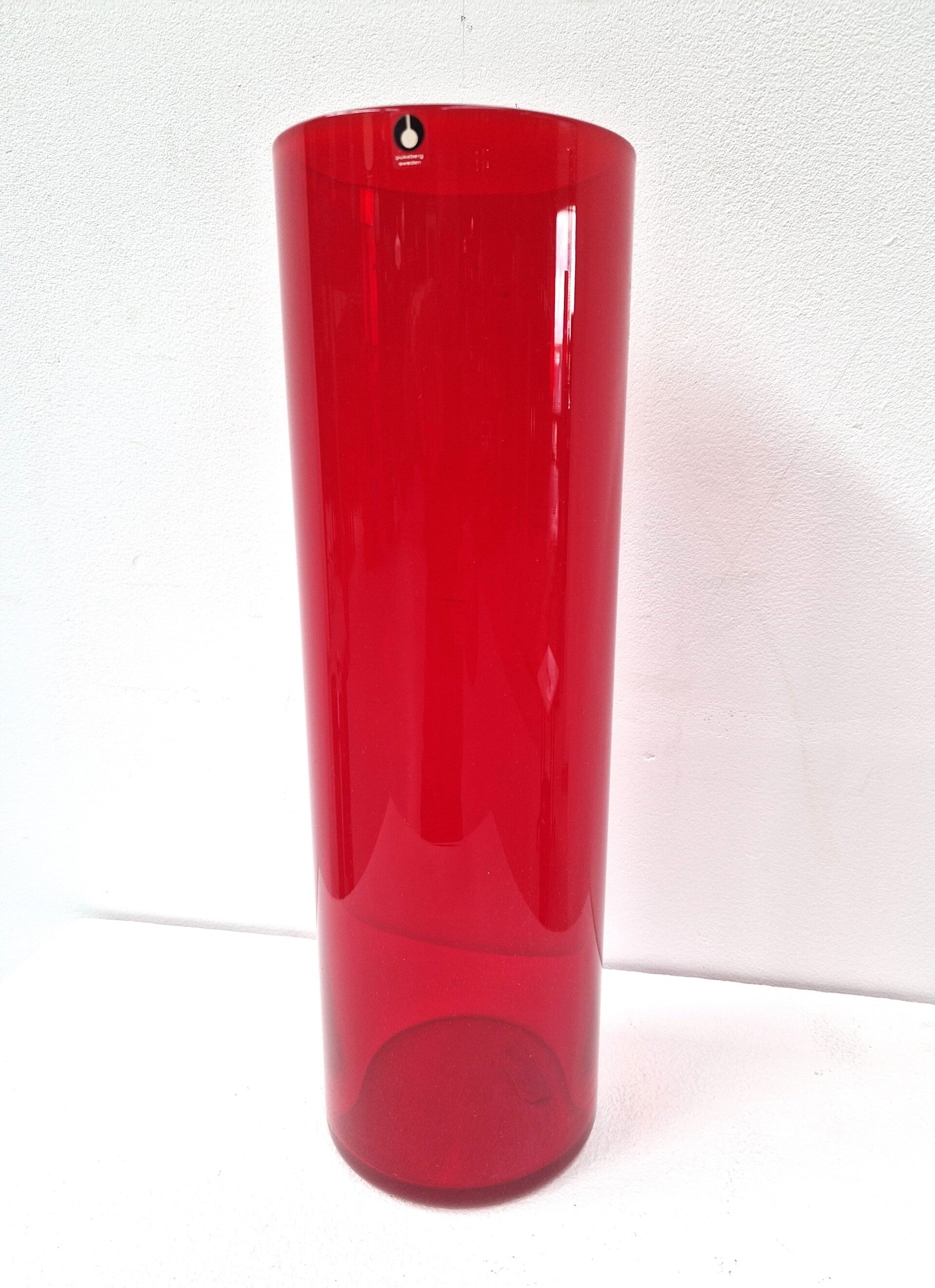 Very large red cylinder vase by Pukeberg, Sweden. It was sold in a Belgian shop in the late 1970s or 80s. Top condition and very deep reds!