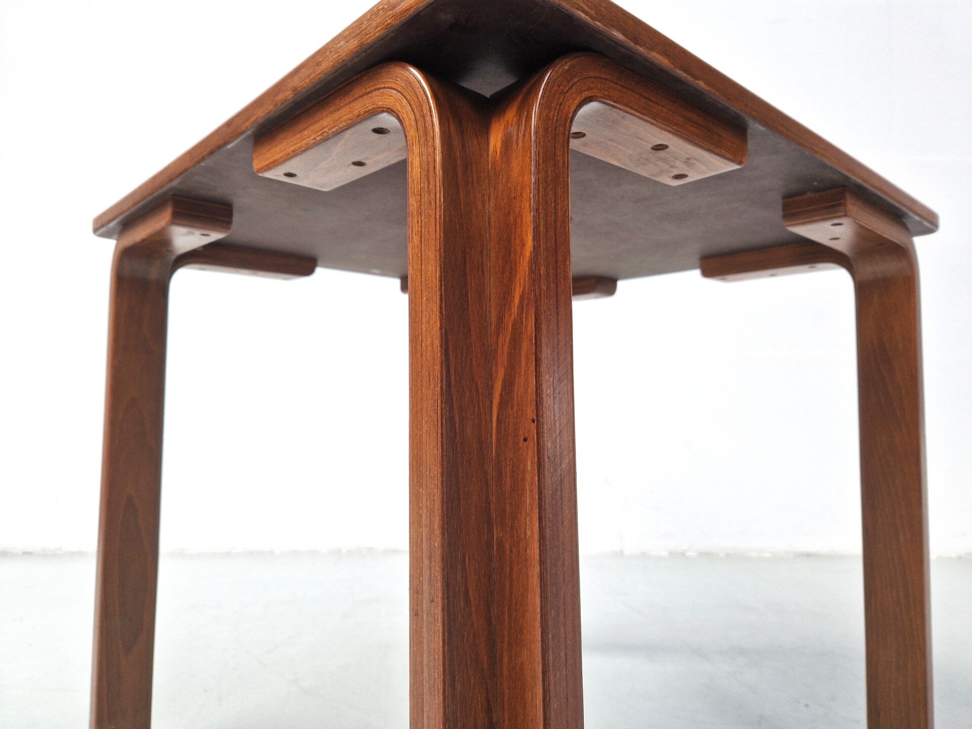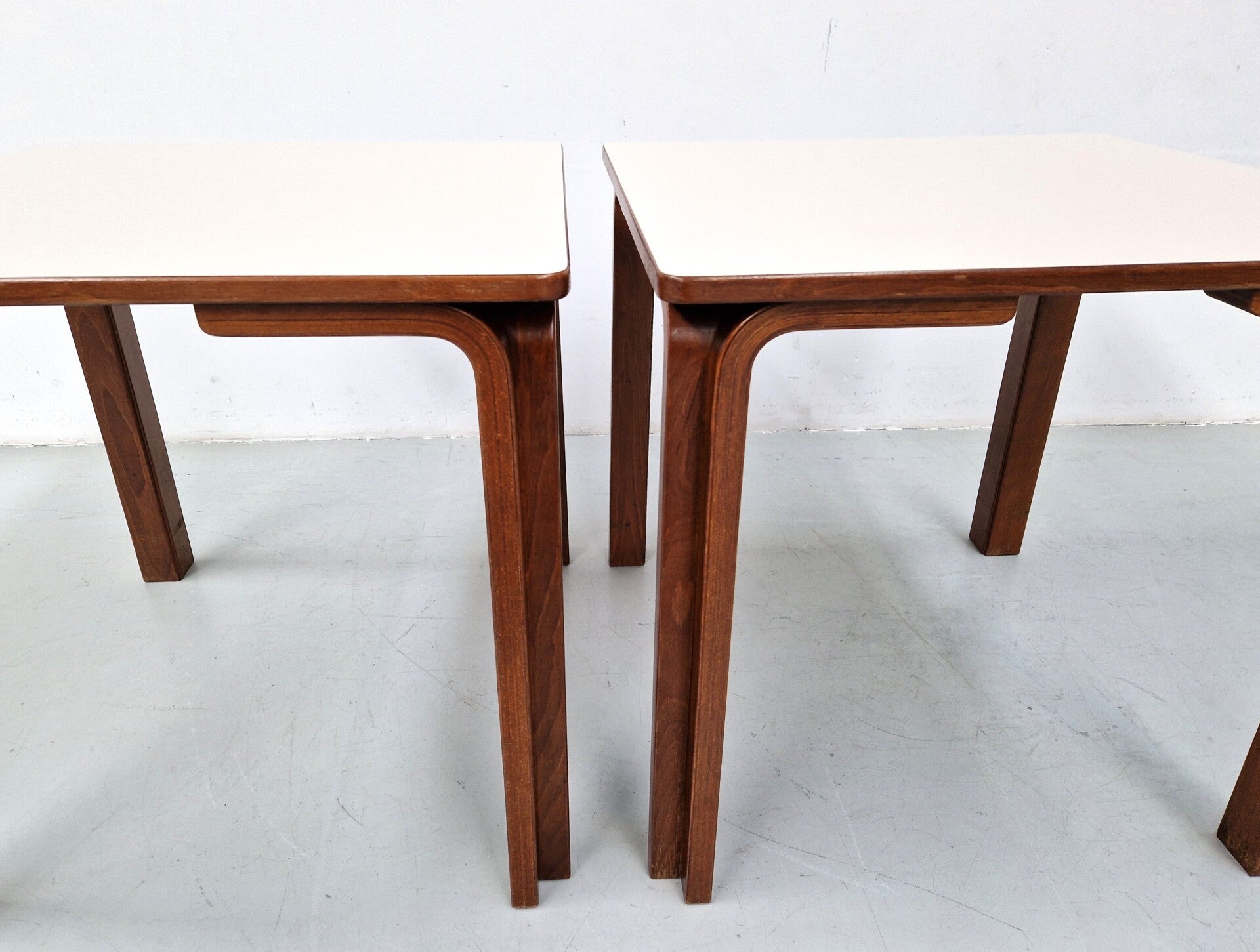 Two stylish square tables in the 'bentwood style' by Tapiovaara and also Rud Thygesen and Johnny Sørensen for Magnus Olsesen. Scandinavian? No, Dutch! Made by the Dutch Schell Industries in the 1980s.