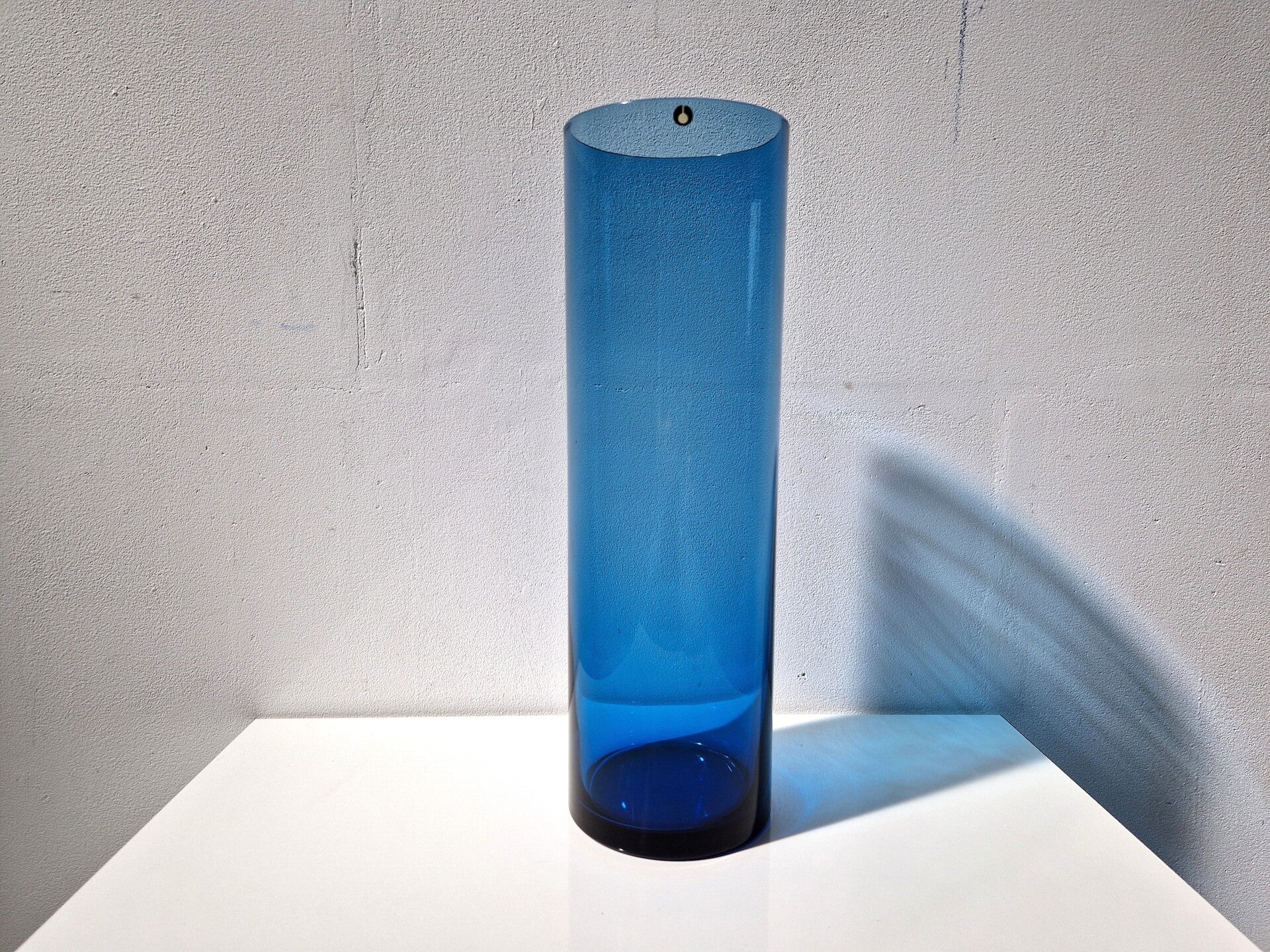Blue Pukeberg Sweden Cylinder Vase XL, 1970s