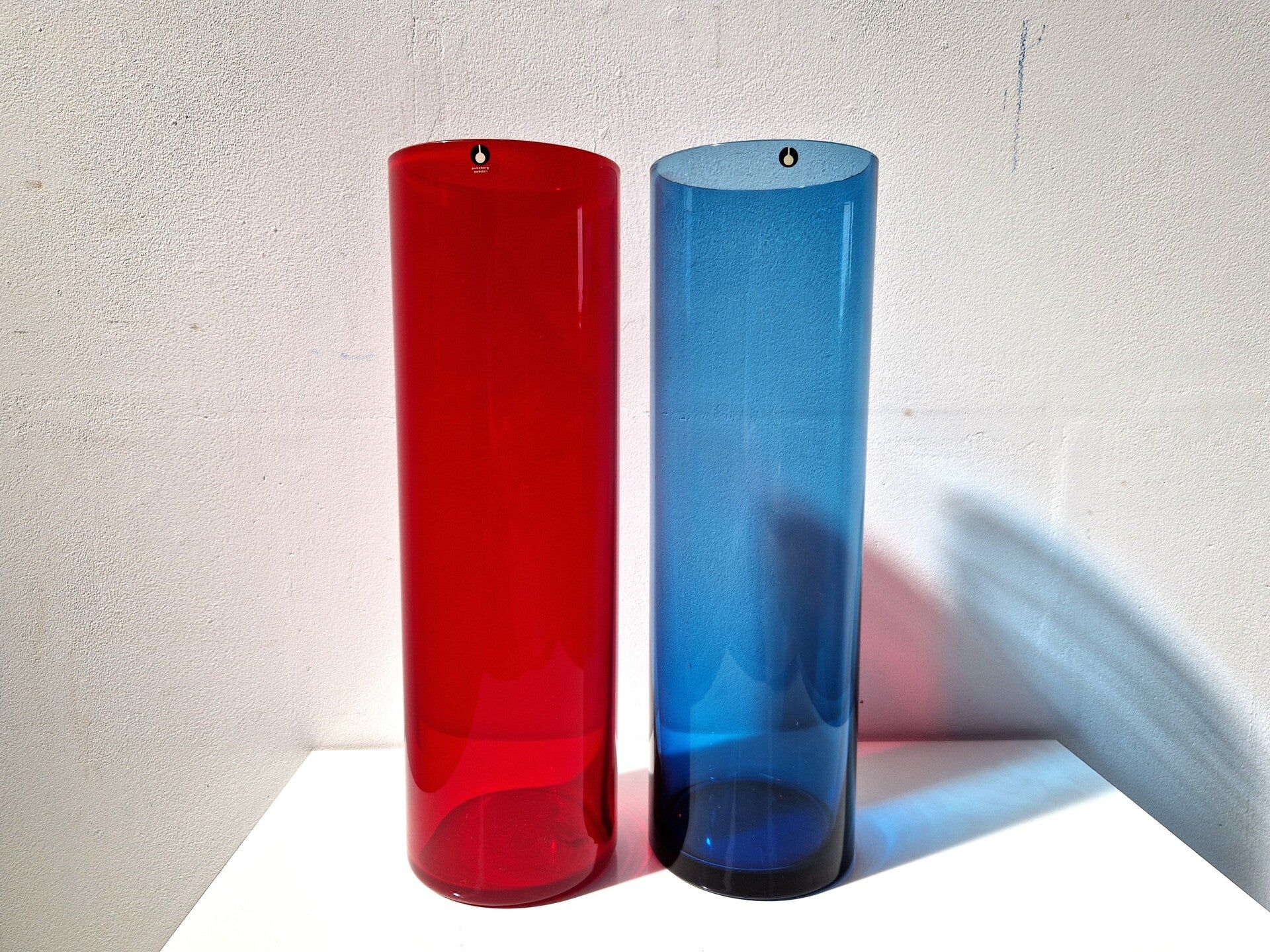 Very large blue cylinder vase by Pukeberg, Sweden. Great condition and pairing really well with the red version we also have on sale. See pictures.