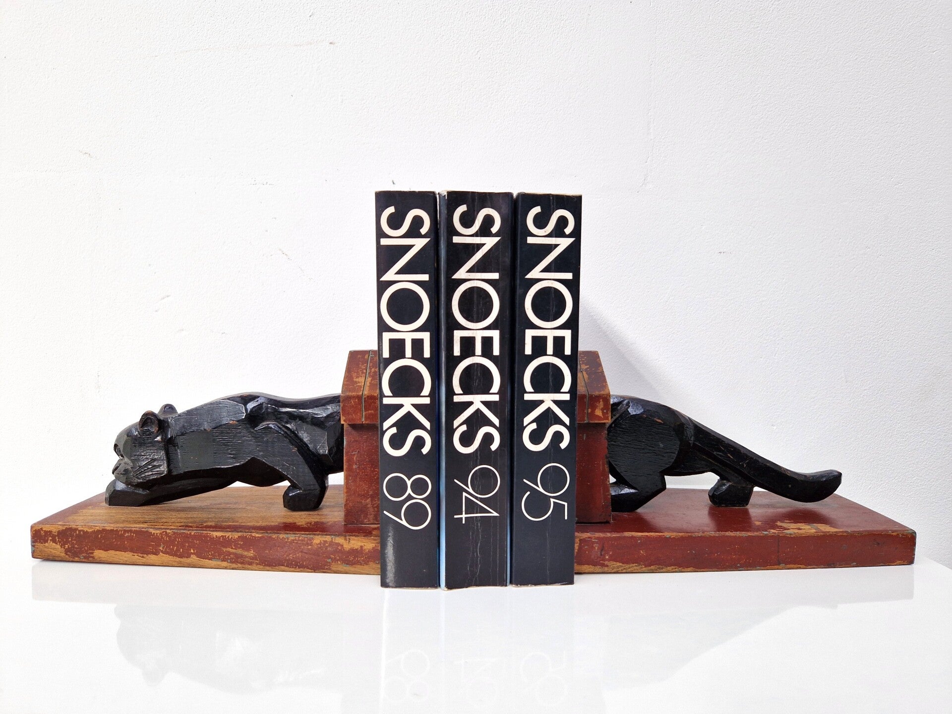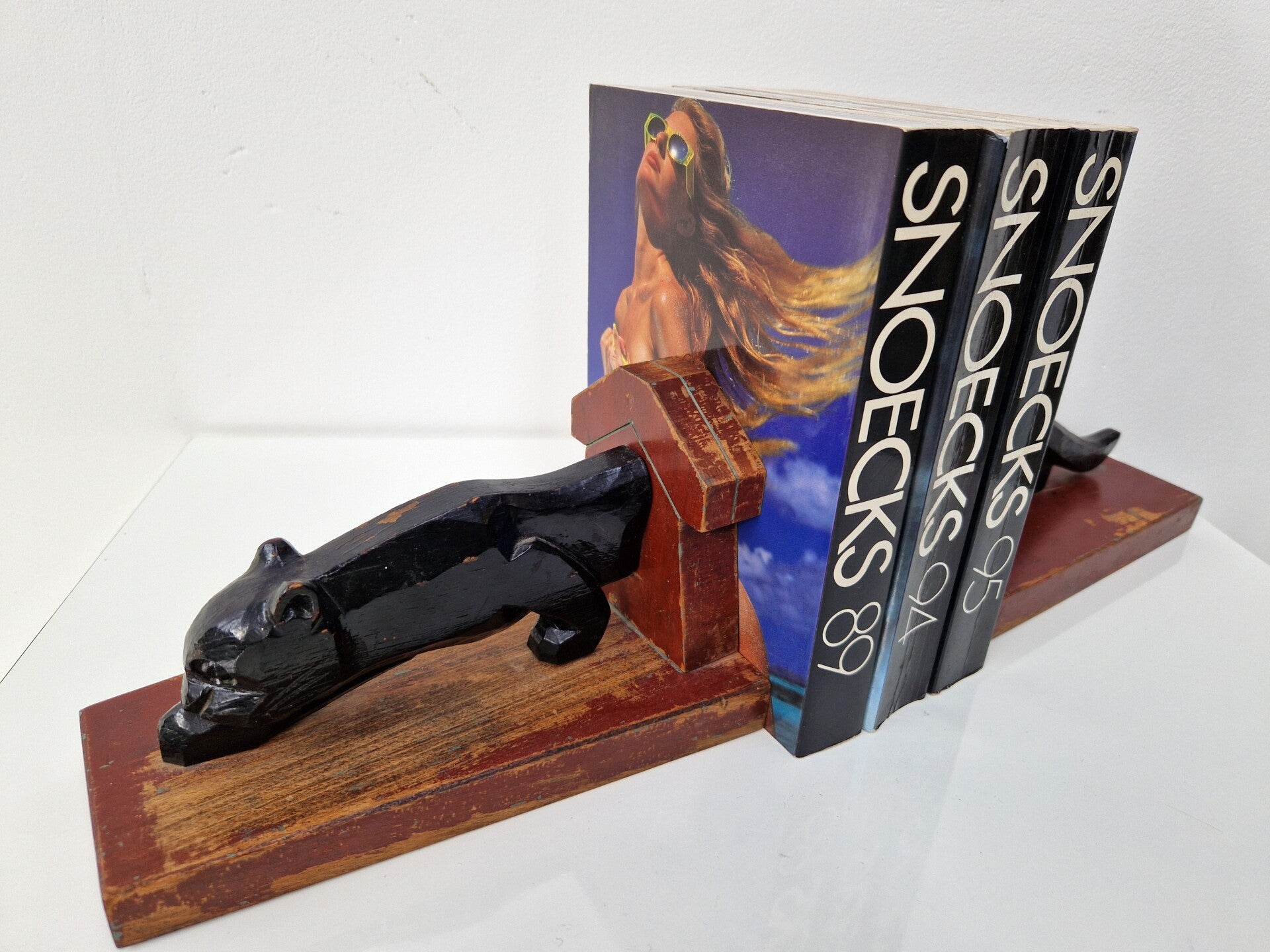 Carved Wooden Panther Bookends, Art Deco, 1920s