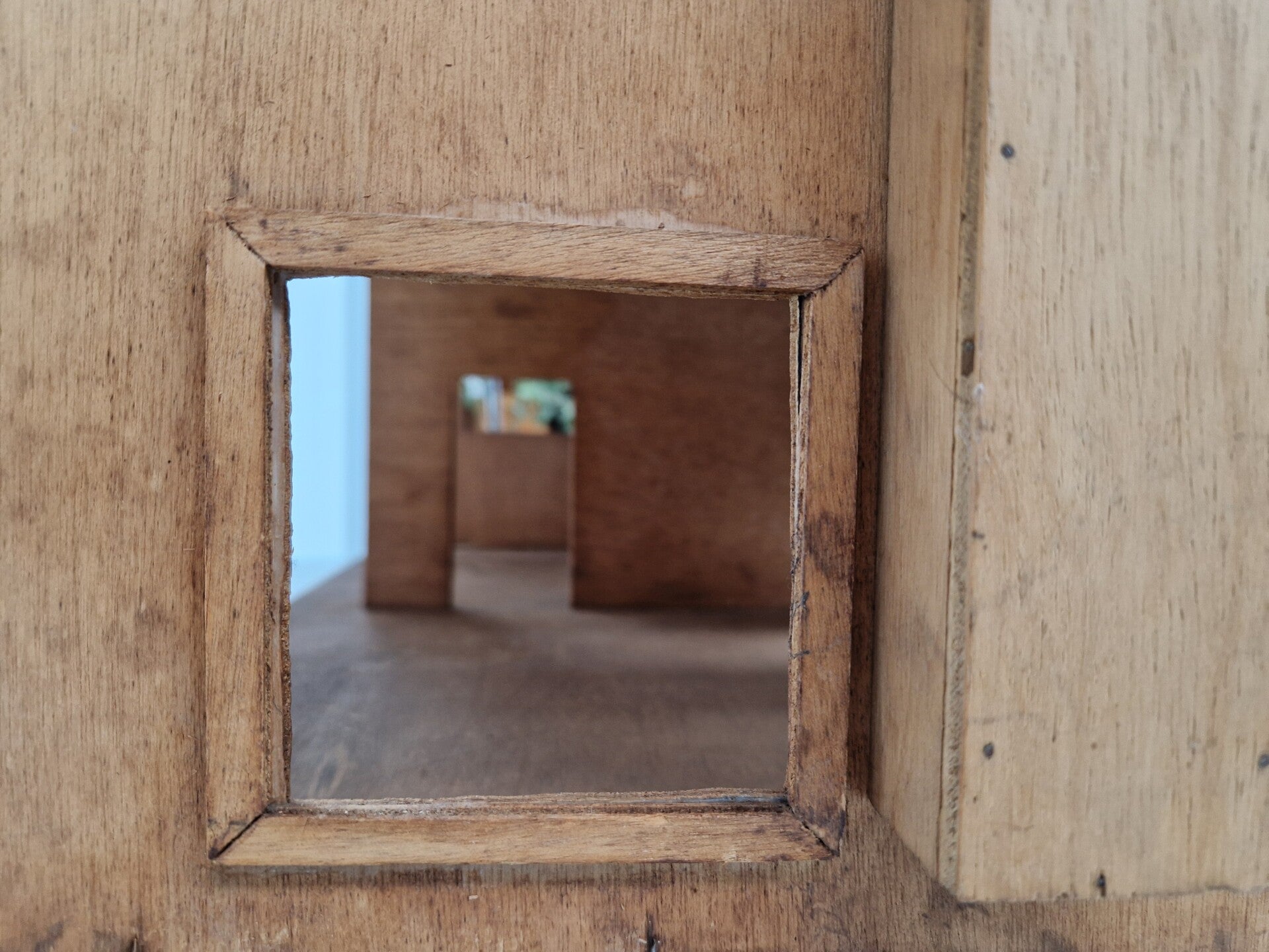 A vintage doll house that just has all the right features. Scale, simplicity, patina and size. Great as an art piece in a room or as an accent light (when a lamp is added).