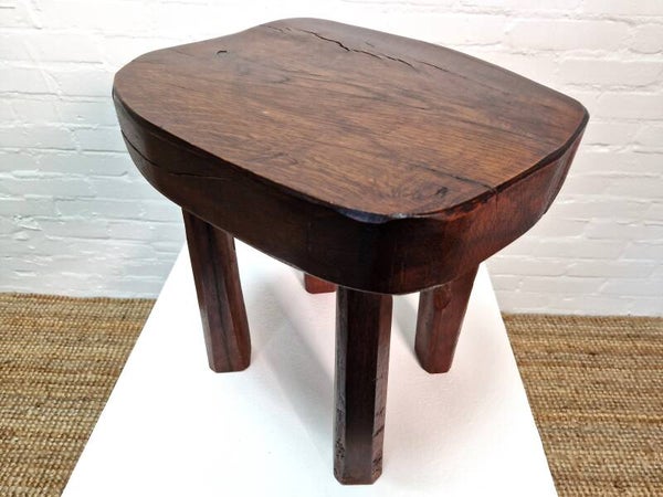 Thick legs, heavy oak and a more than robust appearance, you can safely call this stool brutalist. Very nice original condition. Also useful as a side table next to your lounge chair or as a small bedside table.