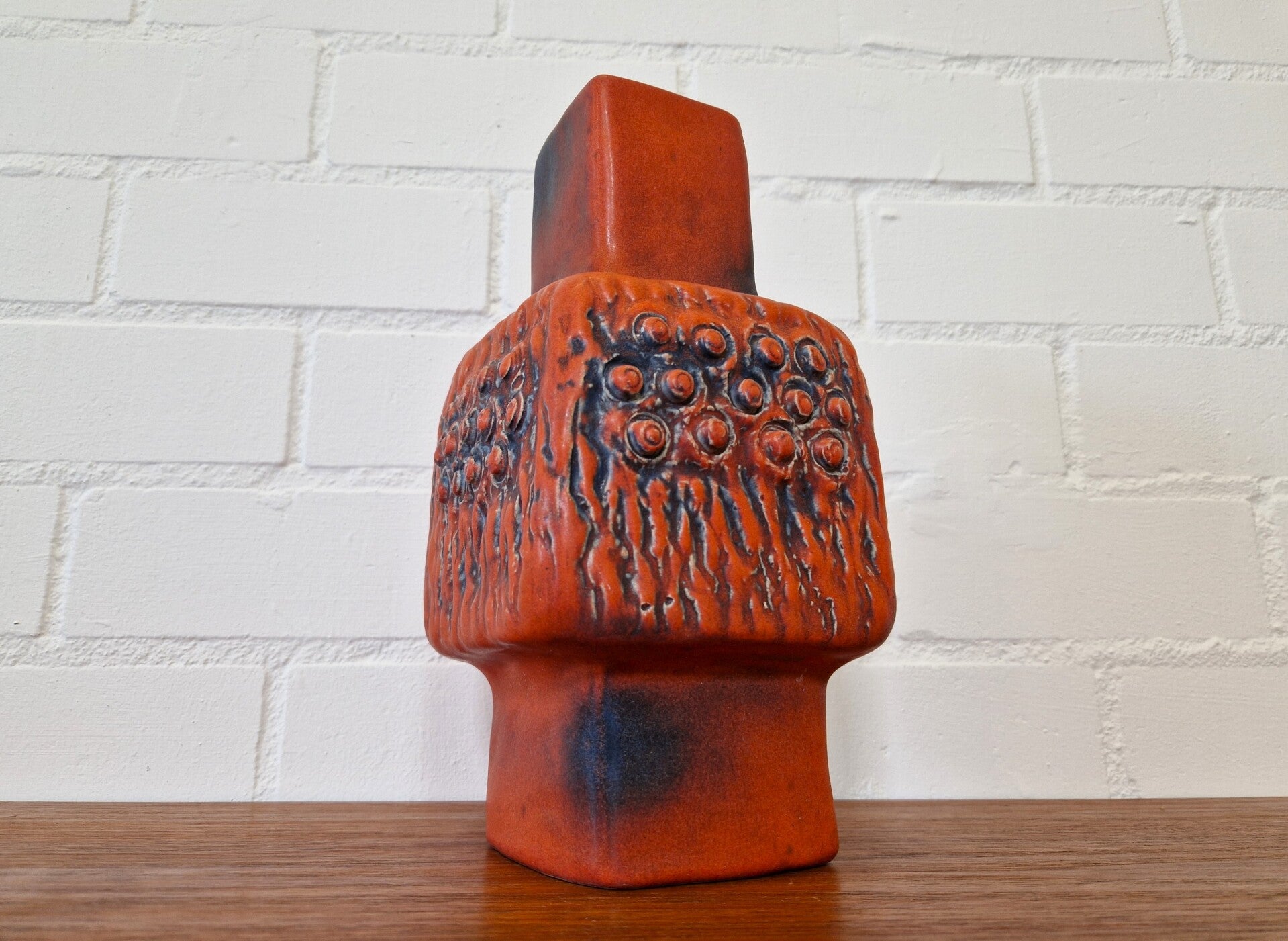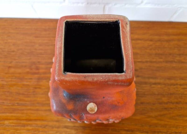 This is a pretty rare beast by Fohr Keramik in red and blue/grey glazing. Amazing details on each side and fully marked on the bottom of the item. Also has original sticker remains by the Fohr company. Great condition!