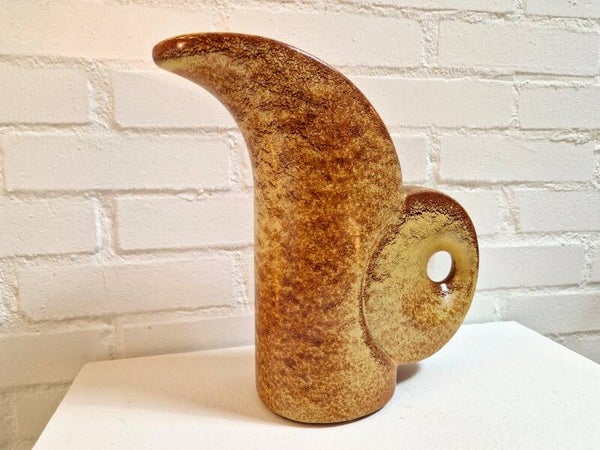 Chunky vase by Roberto Rigon for Bertoncello, Italy. The object has a great dynamic shape and the famous 'tobacco' glaze finish. No chips and numbered on the bottom.