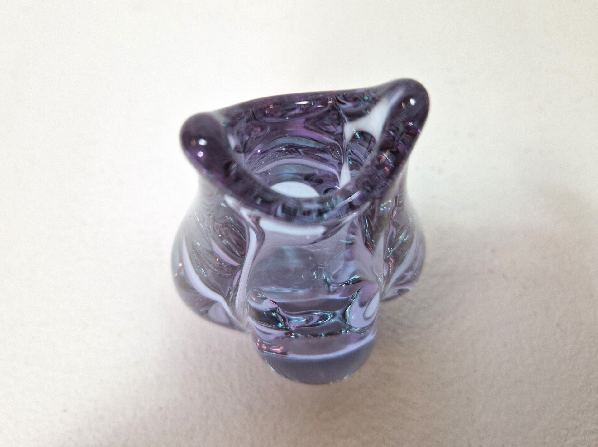 Great little vase by Sklo ( Zelezny Brod Glassworks) in a design by Miloslav Klinger. Vintage 1960's and in perfect shape, very thick glass in wonderful organic shapes. The color is light purple, called Alexandrite. (Neodymium oxide)