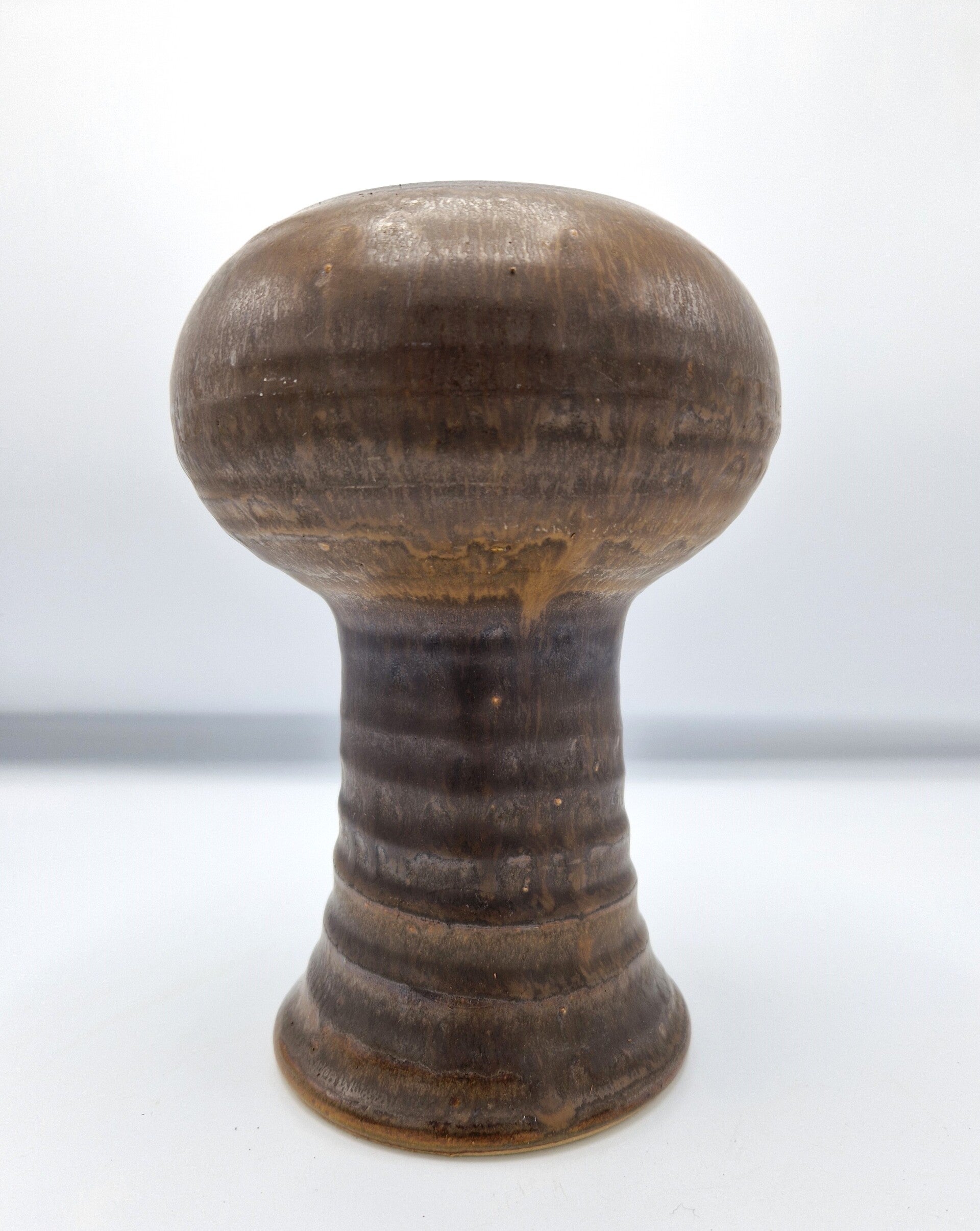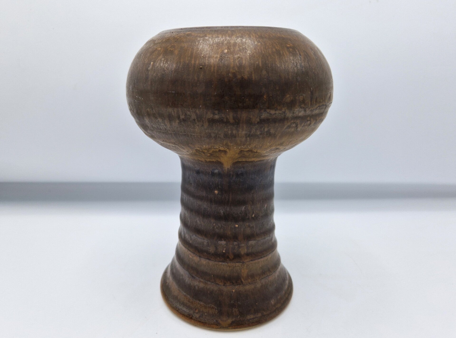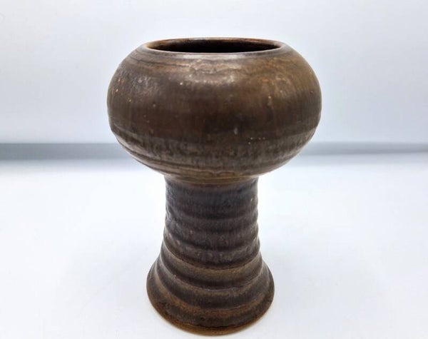 Great Dutch pottery by artist Klaas Fenne (De Leeuwe). The vase is in bronze and browns, has a ribbed foot and looks fabulous. Signed on the base. Made around 1970.