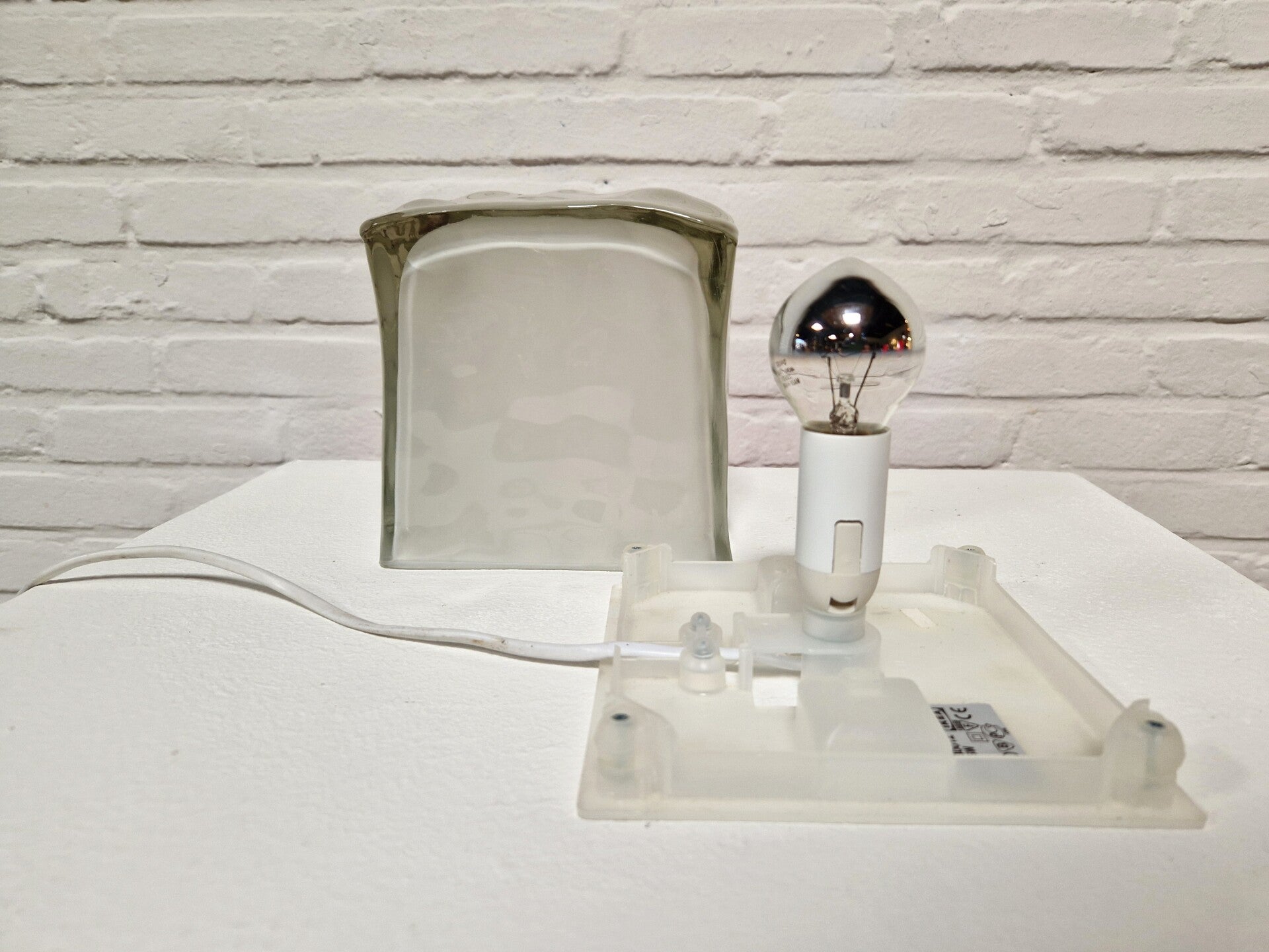 These IKEA Iviken 'Melting Ice Cube' lights are becoming real design icons. The thick glass shade sits on a plastic base that clicks together. Made and sold in the 1990s and discontinued in the 2000s. We have two of these available, both in great condition, but sold seperately!