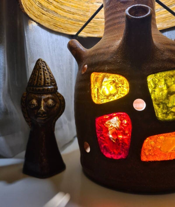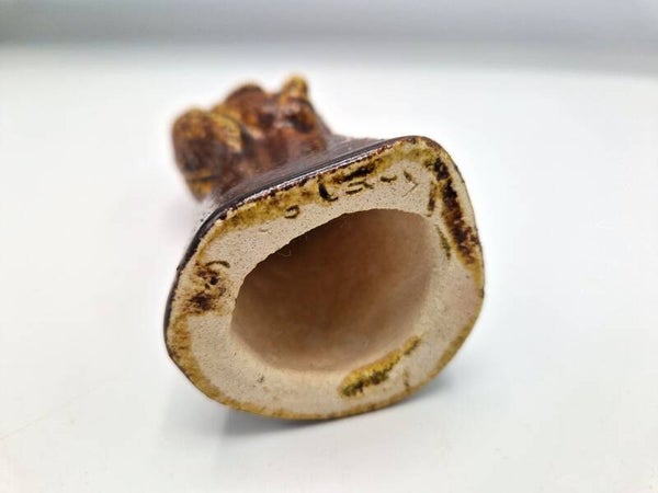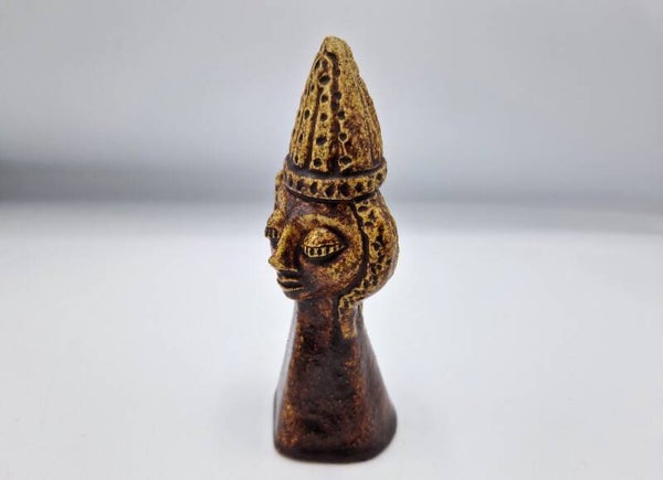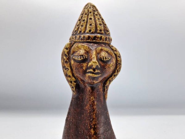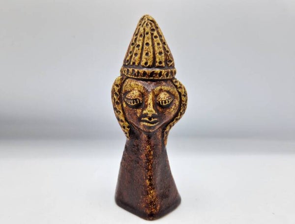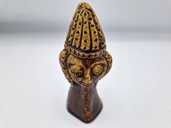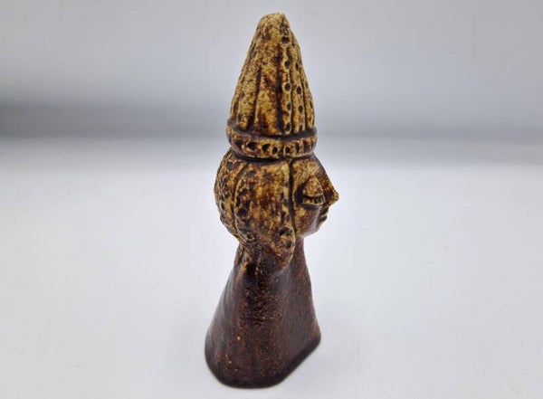 Small in size, big in presence! This beautiful little female sculpture was made by Potiers d'Accolay in the 1960s and just has a great calm vibe. The portrait female has a pointy hat and closed eyes, almost in a Buddha style presence. Great condition and very rare and collectable.