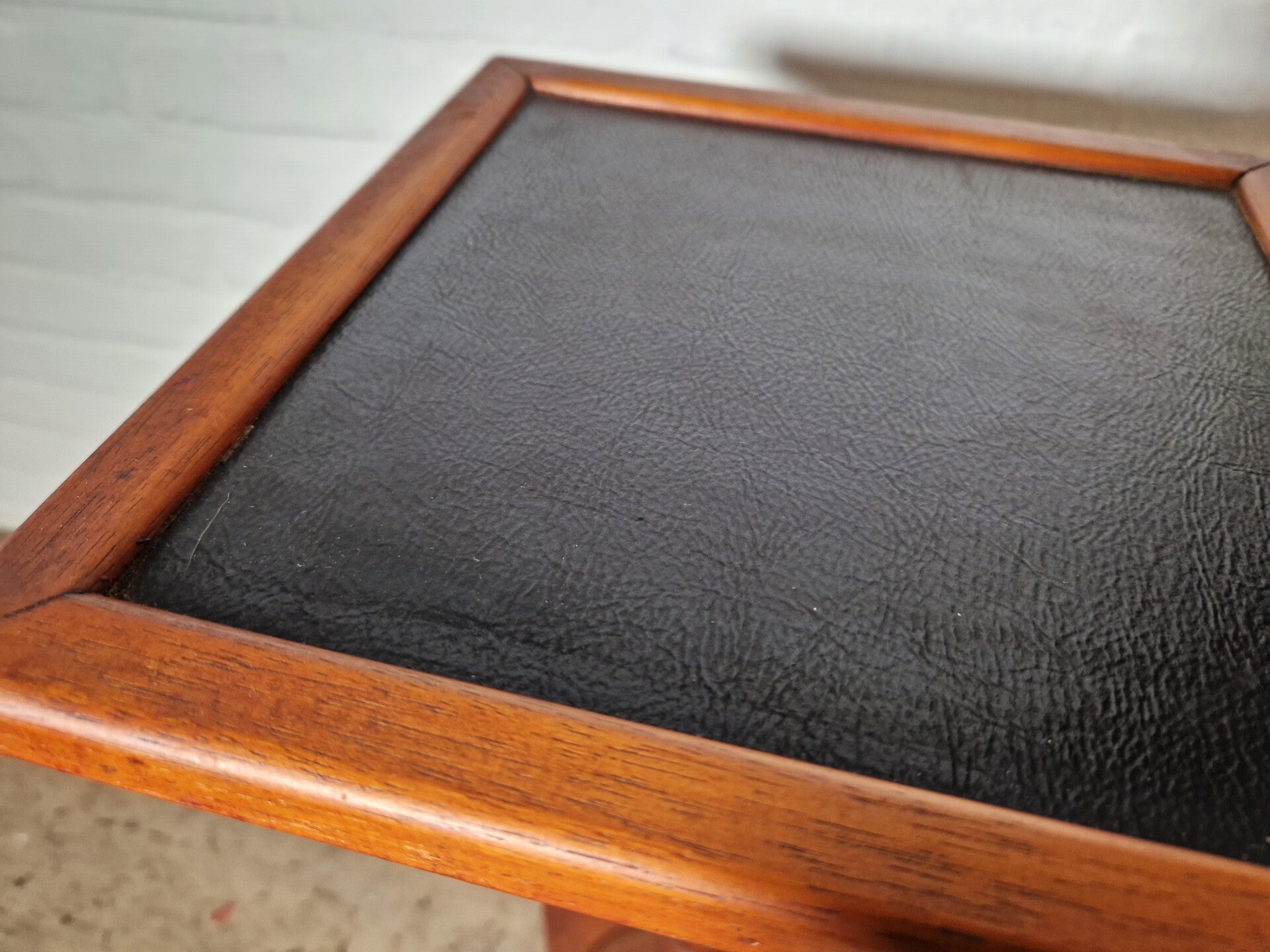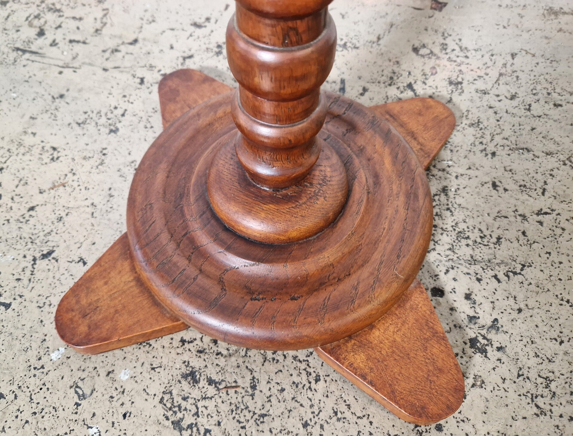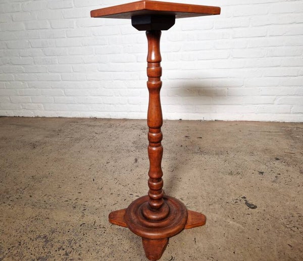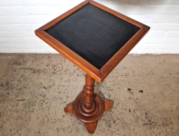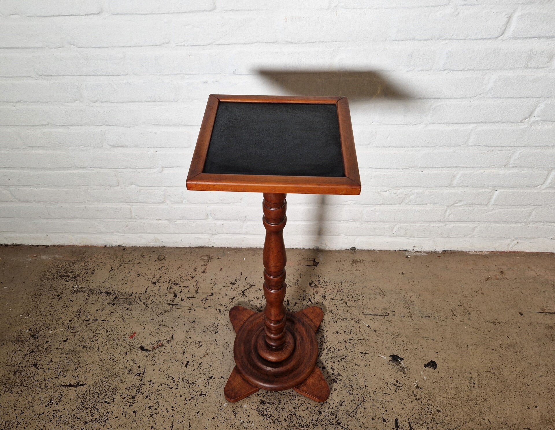 This turned wood plant stand has a leather top and just great proportions and details with a minimum of wear. Looks great anywhere and adds class instantly.