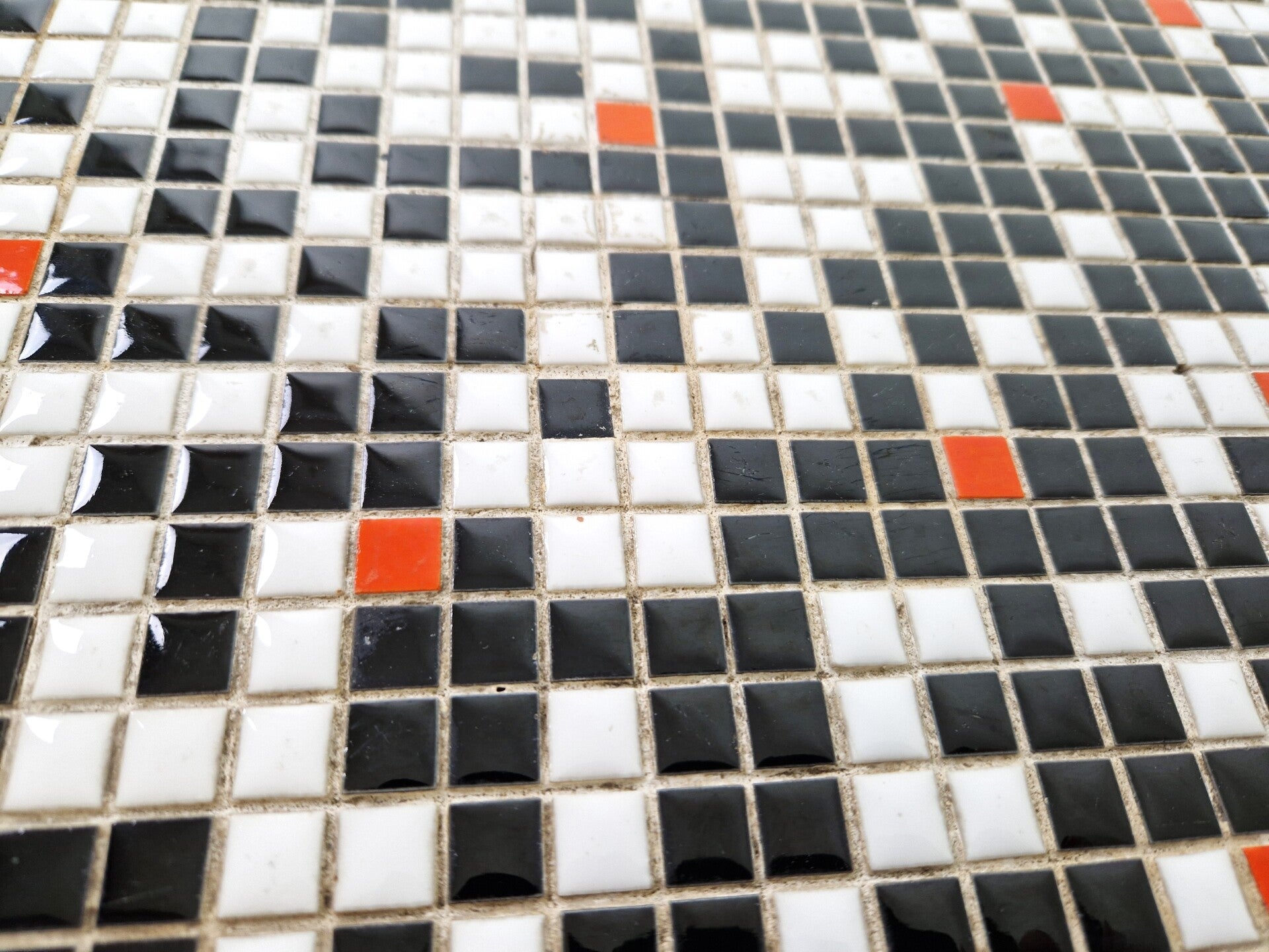 Very charming 1960s plant or side table with mosaic top and black painted wood. Still in good vintage condition and very decorative.