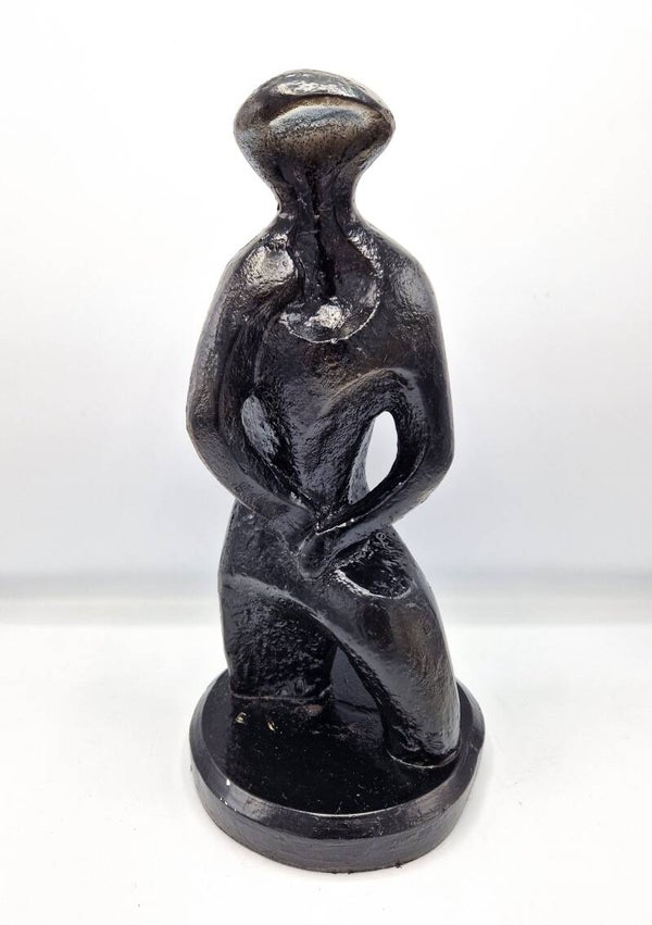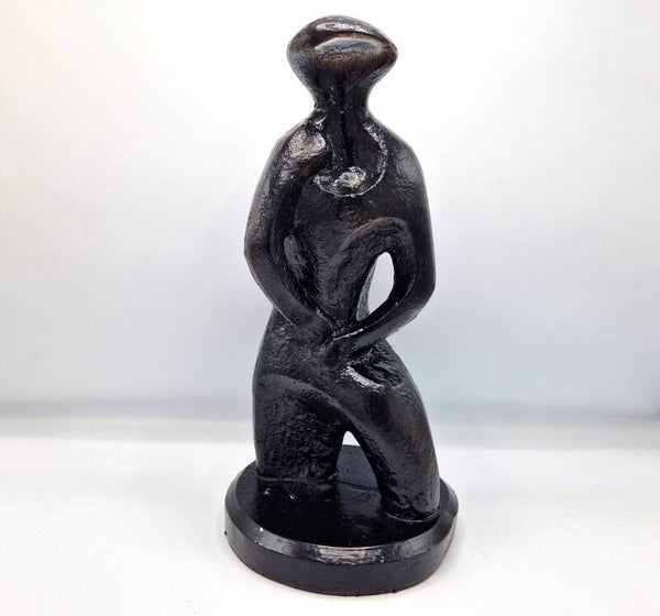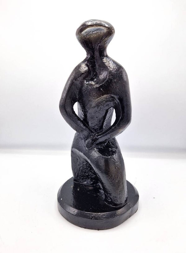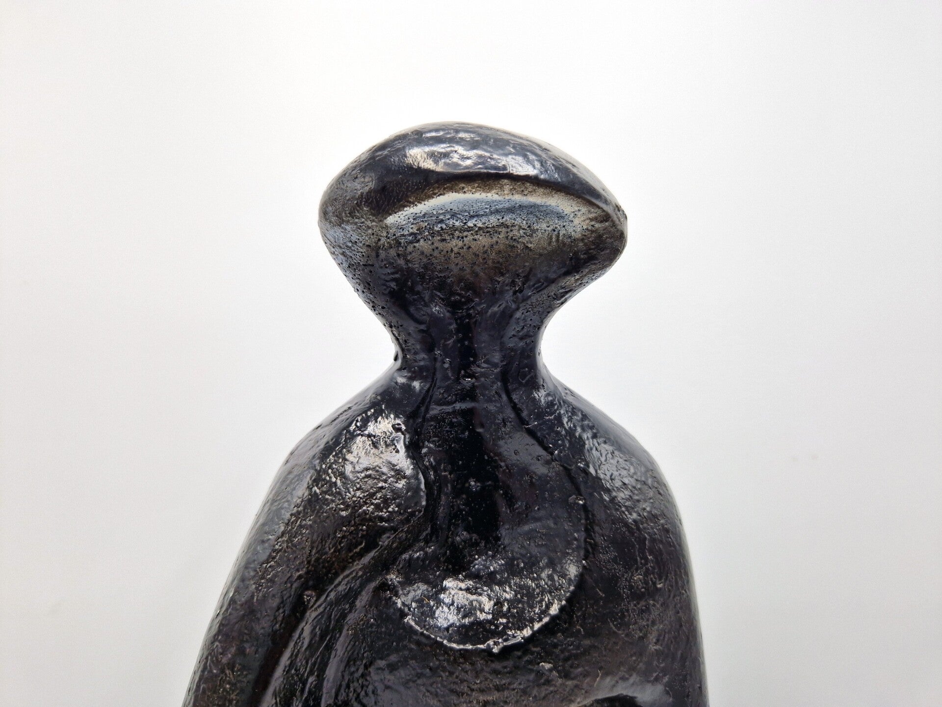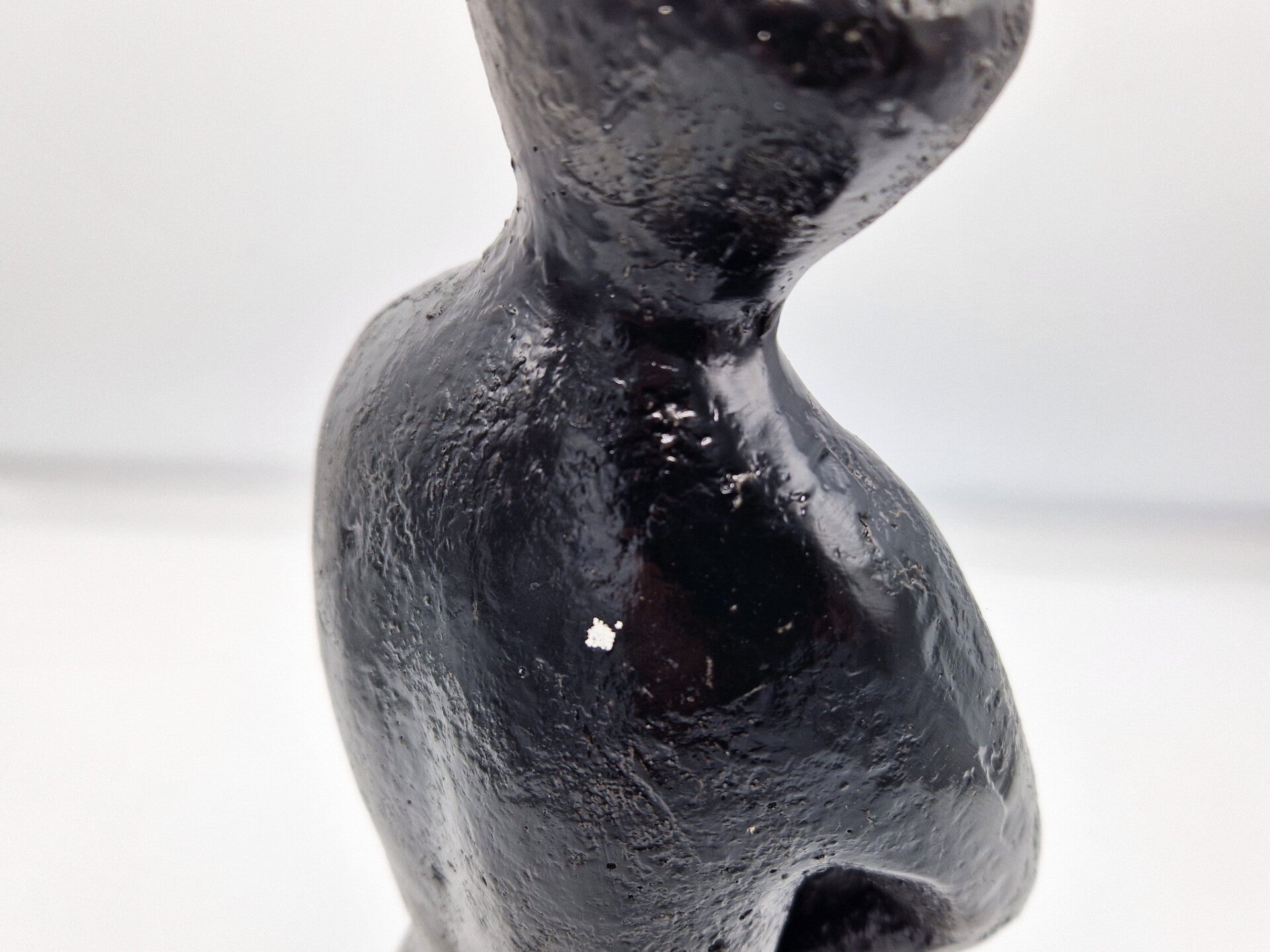 This figurine has a very soothing appearance. Made of clay and painted black with a touch of white on the face. Unsigned but very much in the style of other 1970s pieces. Has some light paint wear that could be easily fixed if desired.