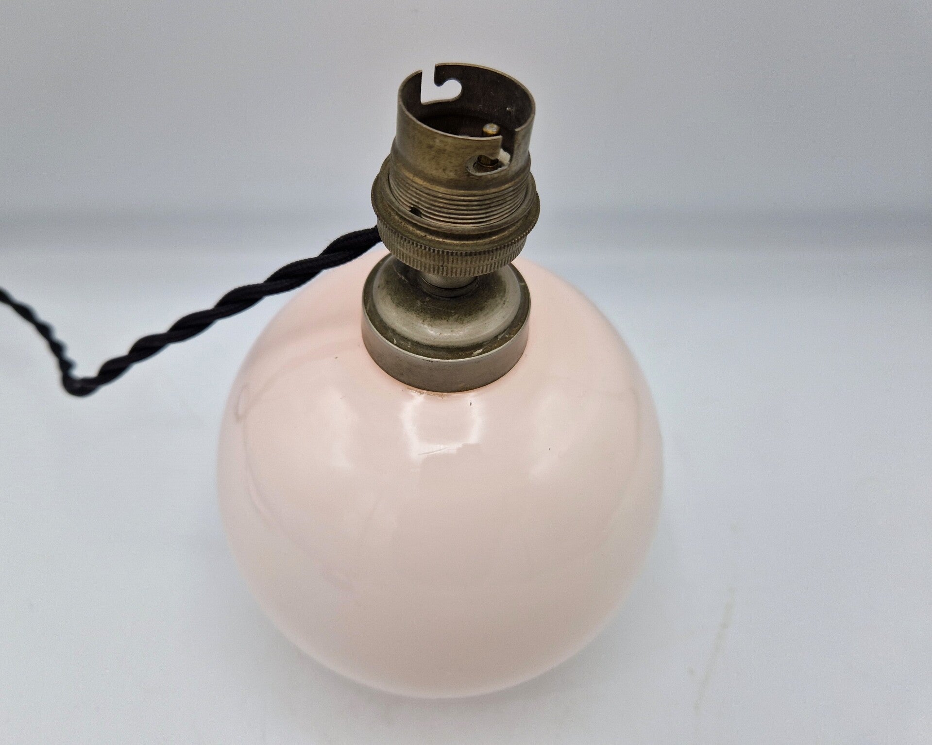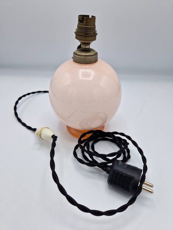 Lovely art deco light from France, made around 1950. The lamp is made out of pressed glass in pink and white. It has been checked and rewired and still features the original bayonet lamp holder. Bulbs can be ordered online (also LED!). We also have a smaller brother of this cute pink bowl light. (both look great as bedside lights!)