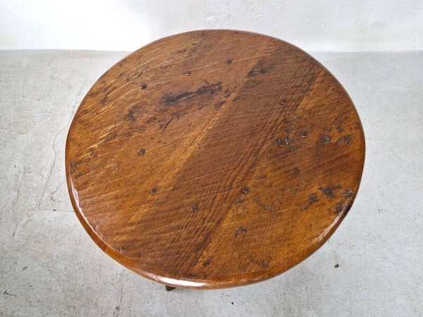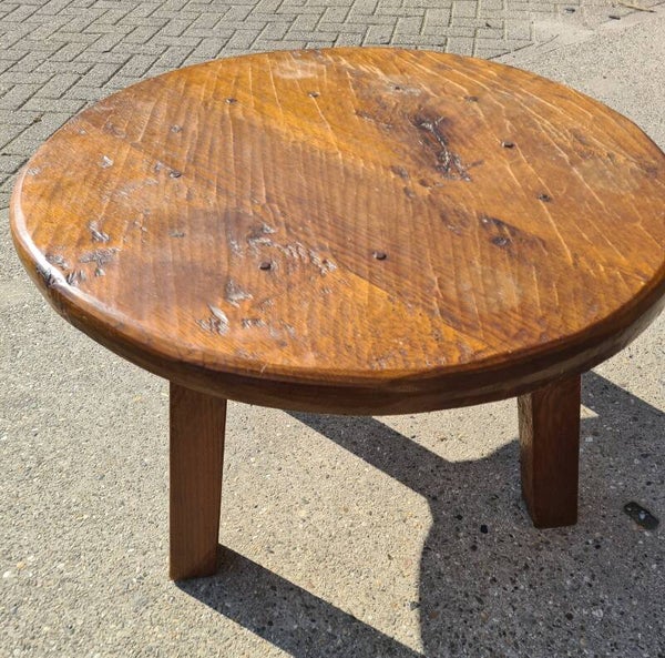 This pretty beast is just full of understated class. Pure oak, so pretty heavy but still very manageable (average person can lift it alone). The top has a beautifull rustic carved look and the patination of the lacquer is perfect. Will st very nicely in a modern interior as a warm touch but it can also complement your Wabi Sabi vibe.