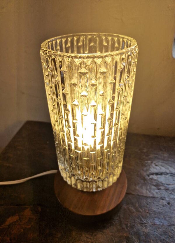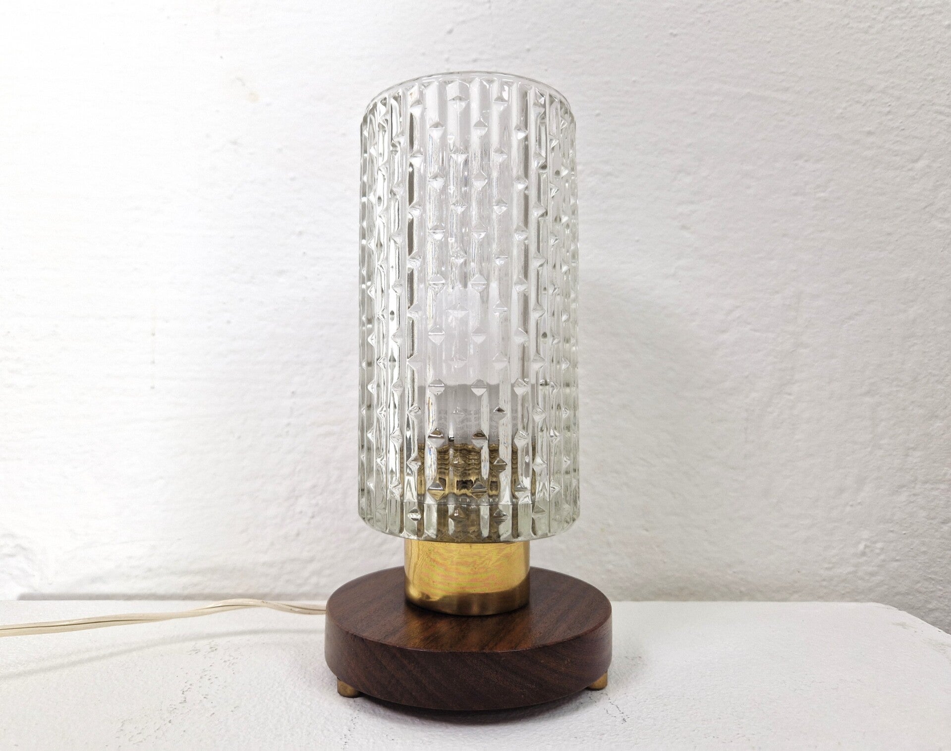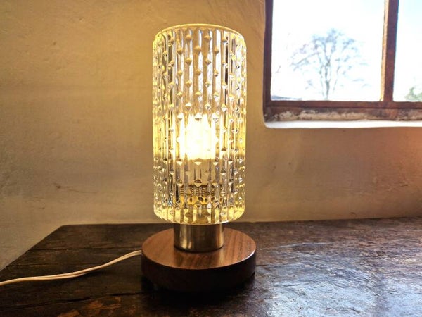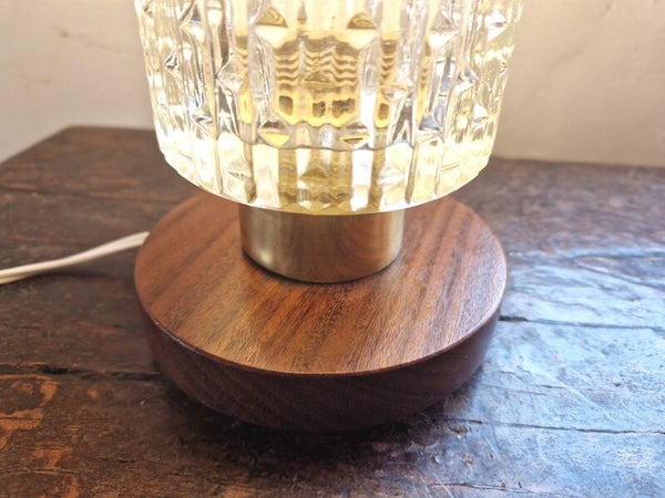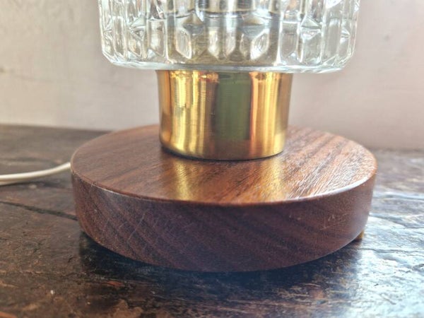 Mid-century Brass, Glass and Teak Bedside Lamp