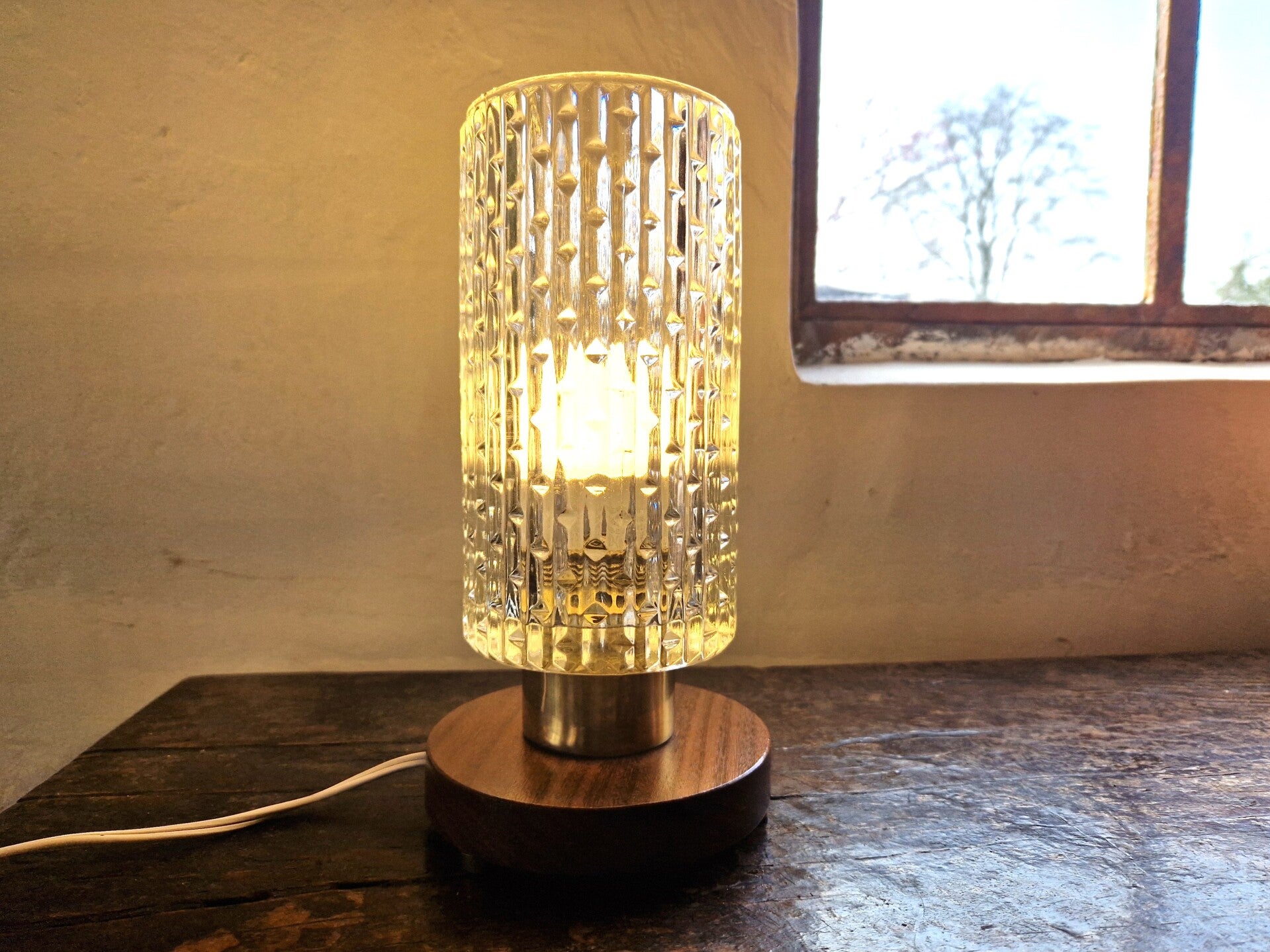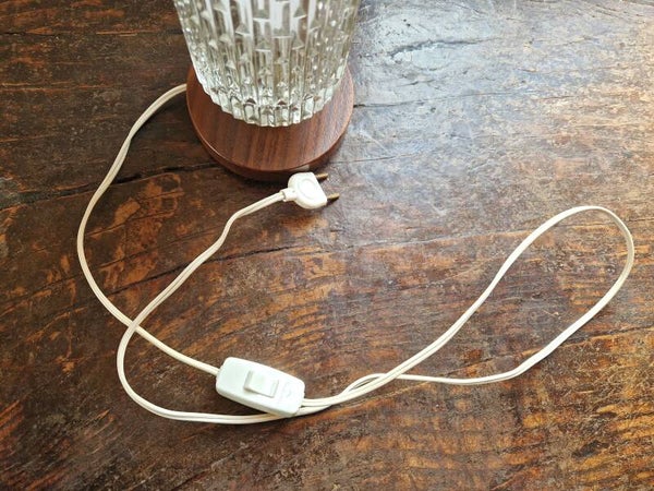 This 1960s bedside or table light screams elegance and luxury. It has a teak base, with brass feet and lampholder and a glass shade that spreads the light beatifully. Great condition.