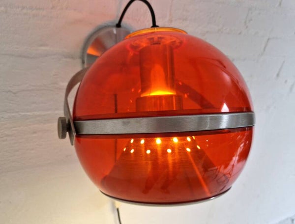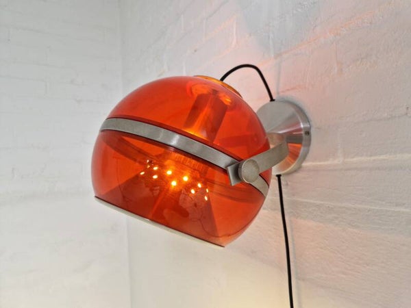 Coolest of the cool orange wall light by Dijkstra, made in the 1970s. Plexi and aluminium based space age wall piece that is fully original and comes with original shop label too. Great vintage condition. Wear consistent with age.