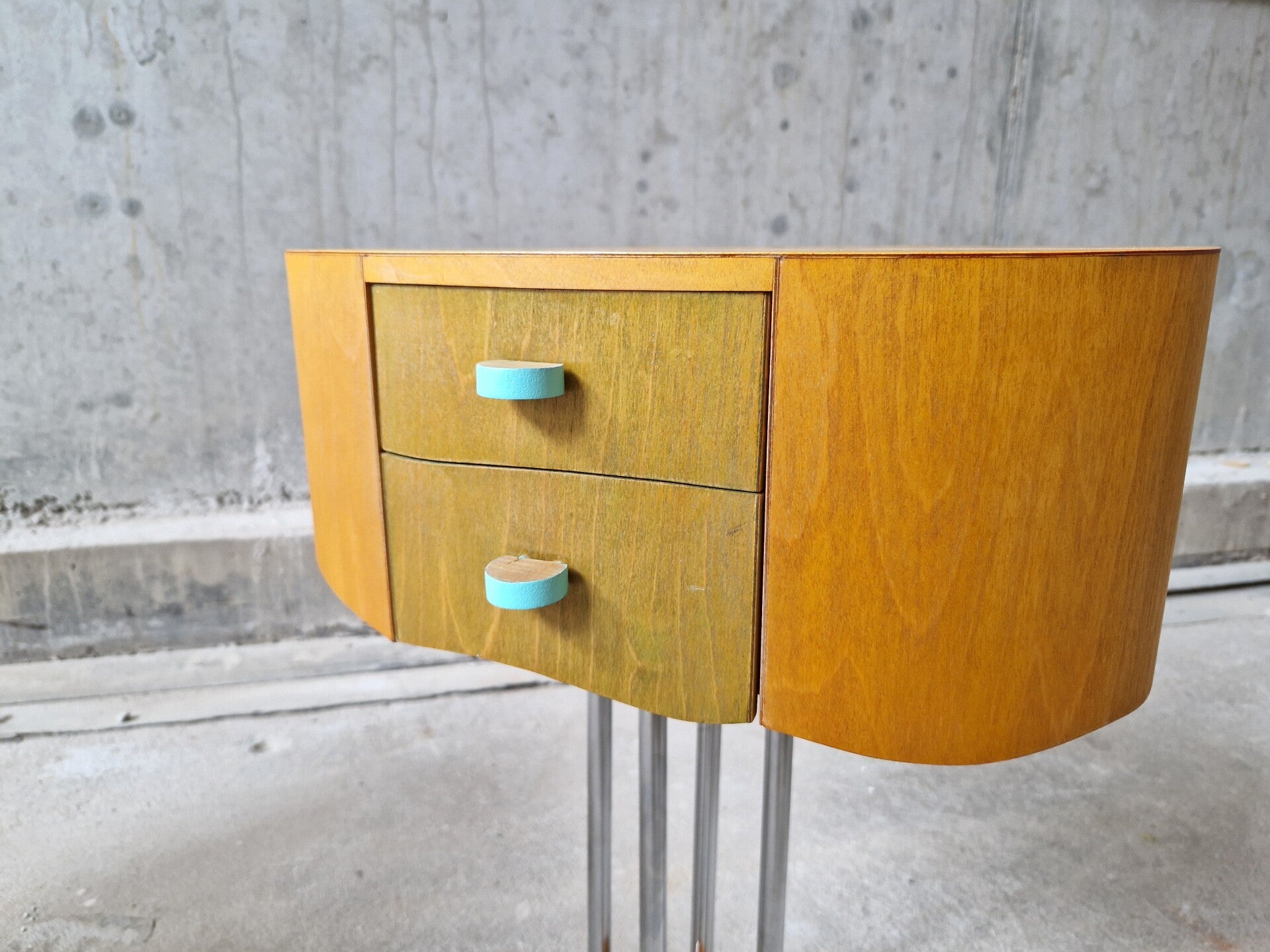 These two side tables or night stands with drawers are truly unique, made by a Dutch artist in the 1980s (unfortunately the name got lost by the original owners).