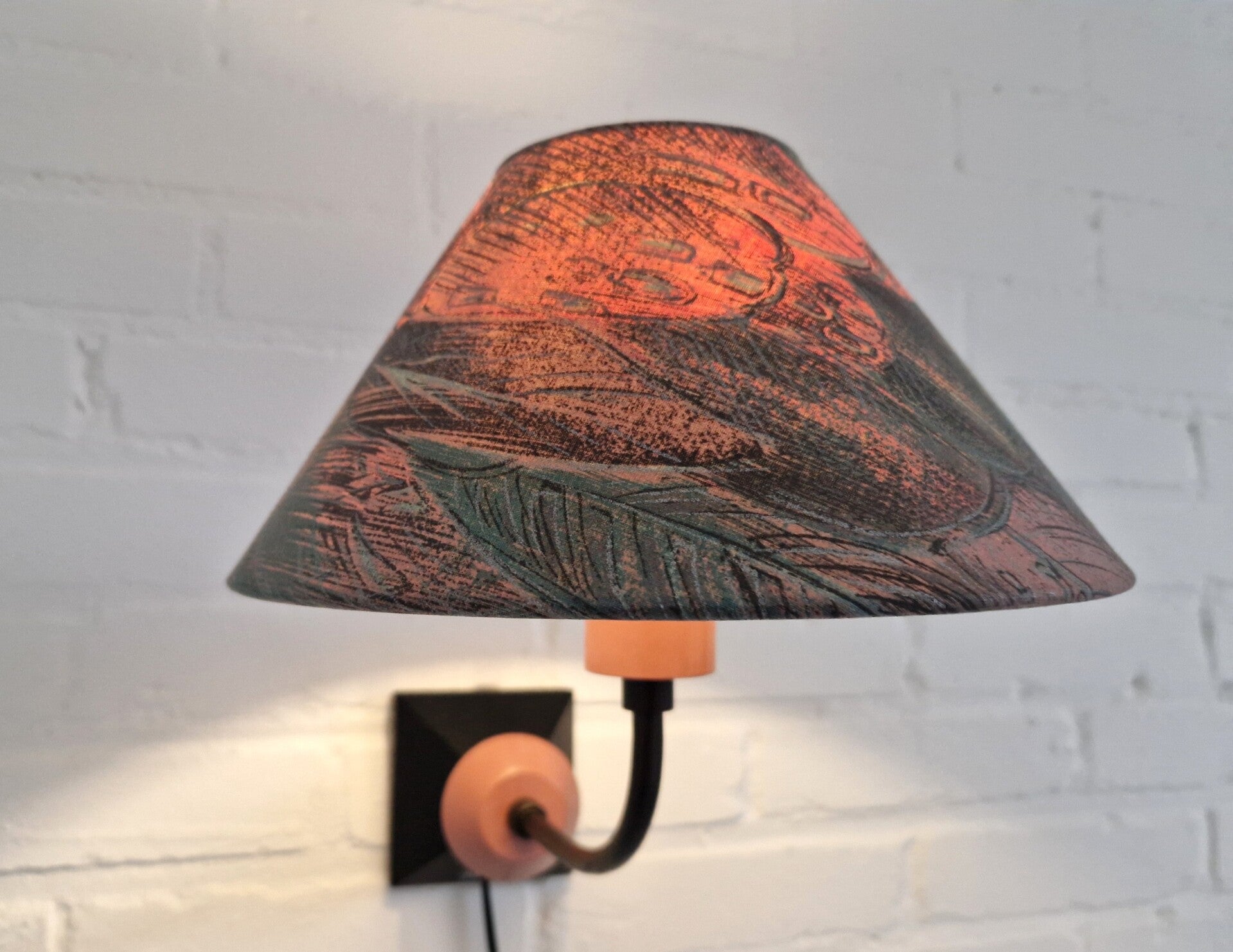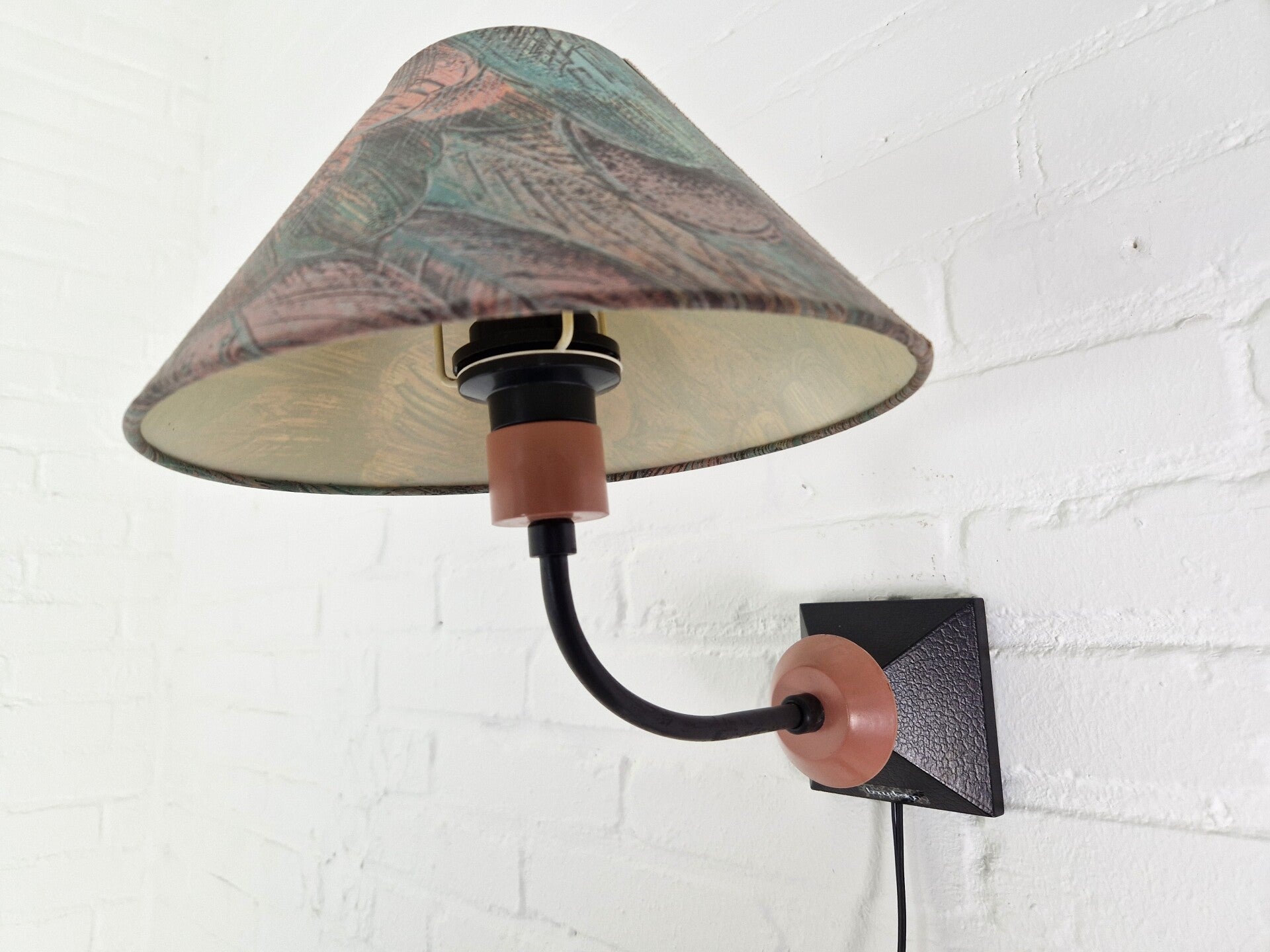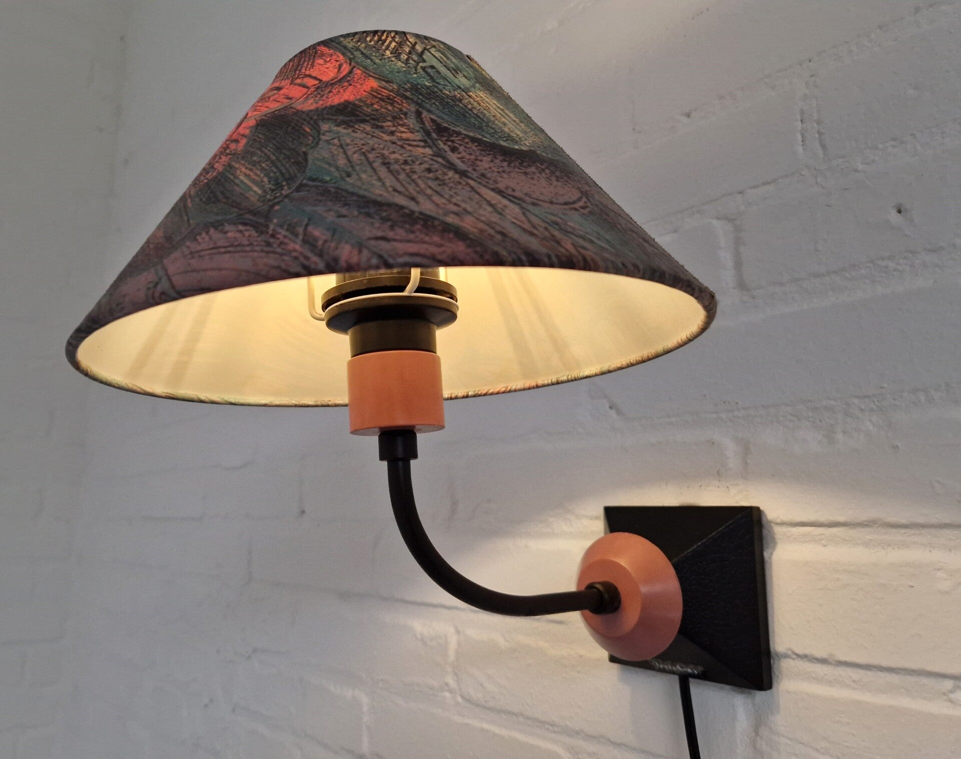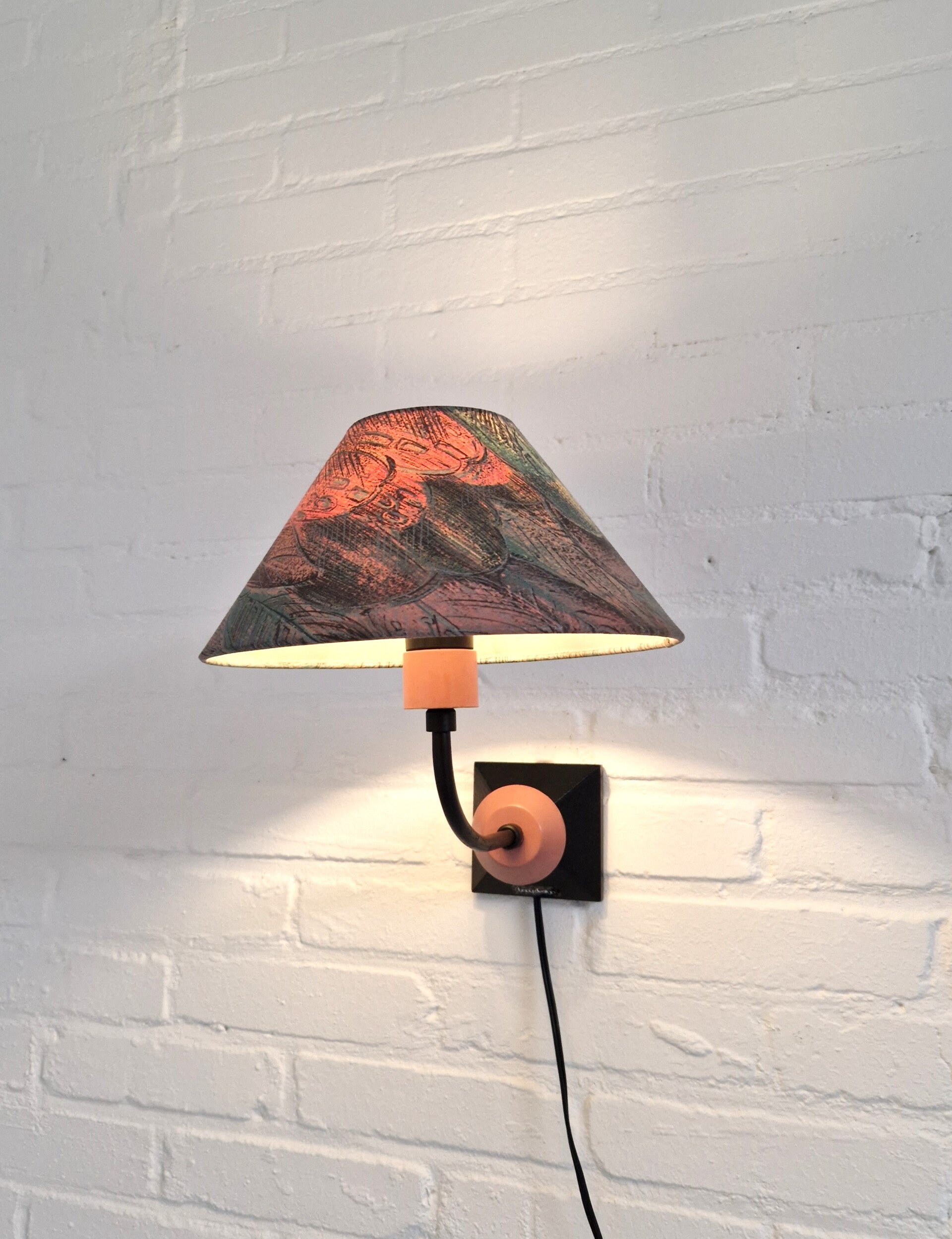Fantastic 1980s postmodern wall light made by Bony Design, The Netherlands. The black and pink wall light comes in original condition including original shade! Great for setting a vintage mood in any room. Great condition, wear consitent with age ( minor dents).