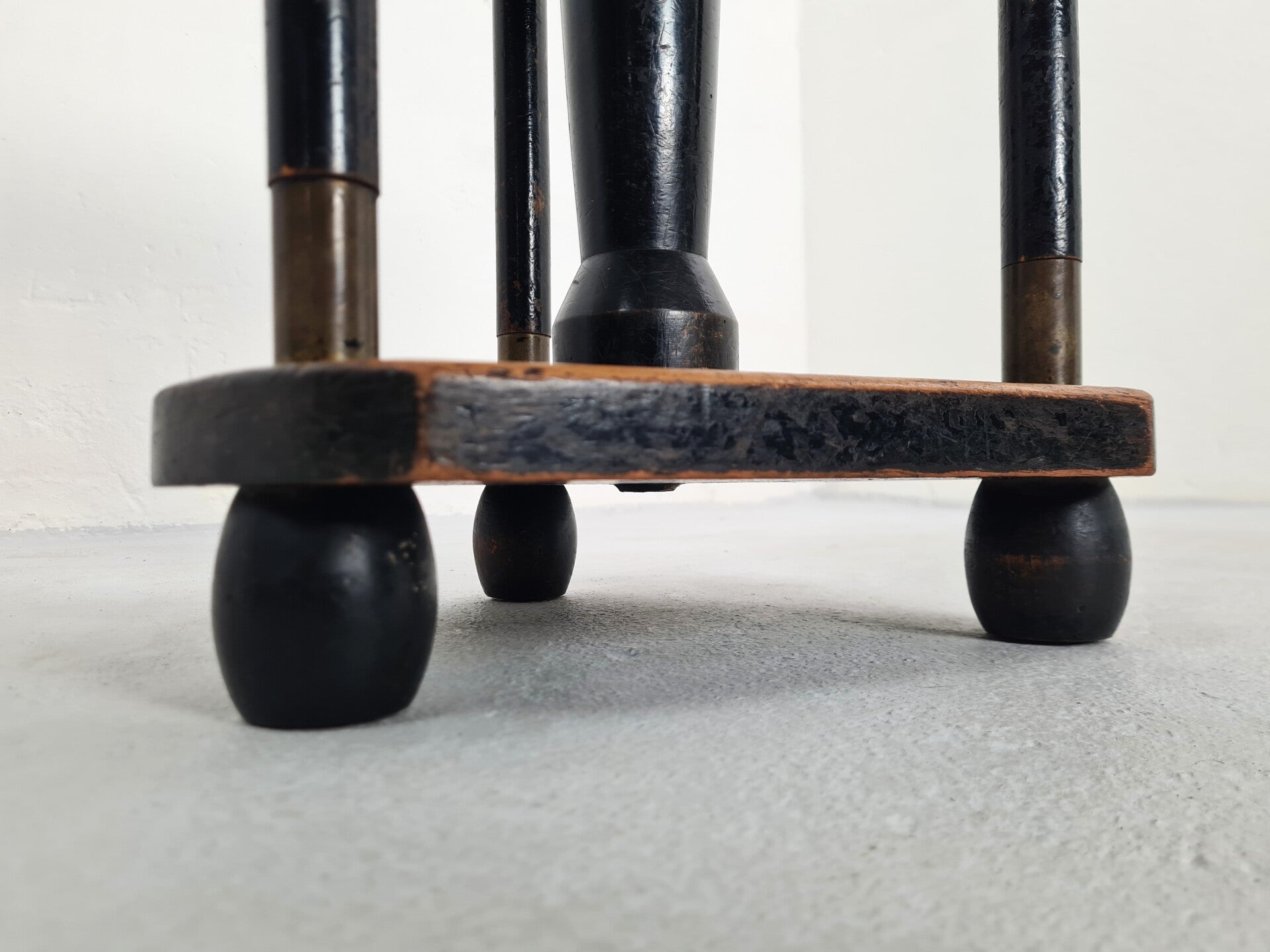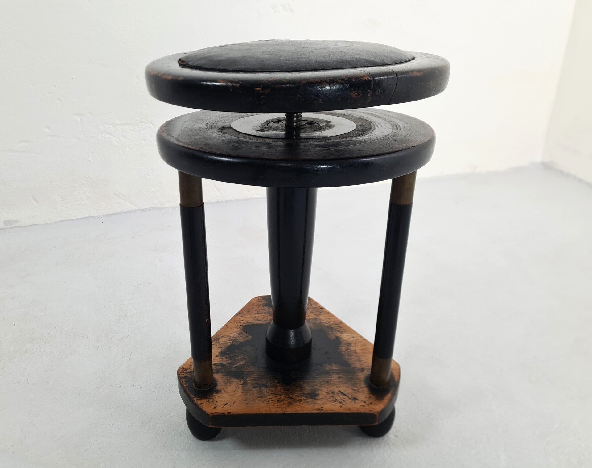 We found this amazing Art Deco/ Jugenstill piano stool in wood and brass. It is in 100% original condition and we just gave it a coat of wax. The adjustable seat is working perfectly so it can be easily used. The wear and patina on this particular piece is incredible. The faux leather top has a slight tear on the side. It can be easily glued or newly upholstered, but we leave that up to you.