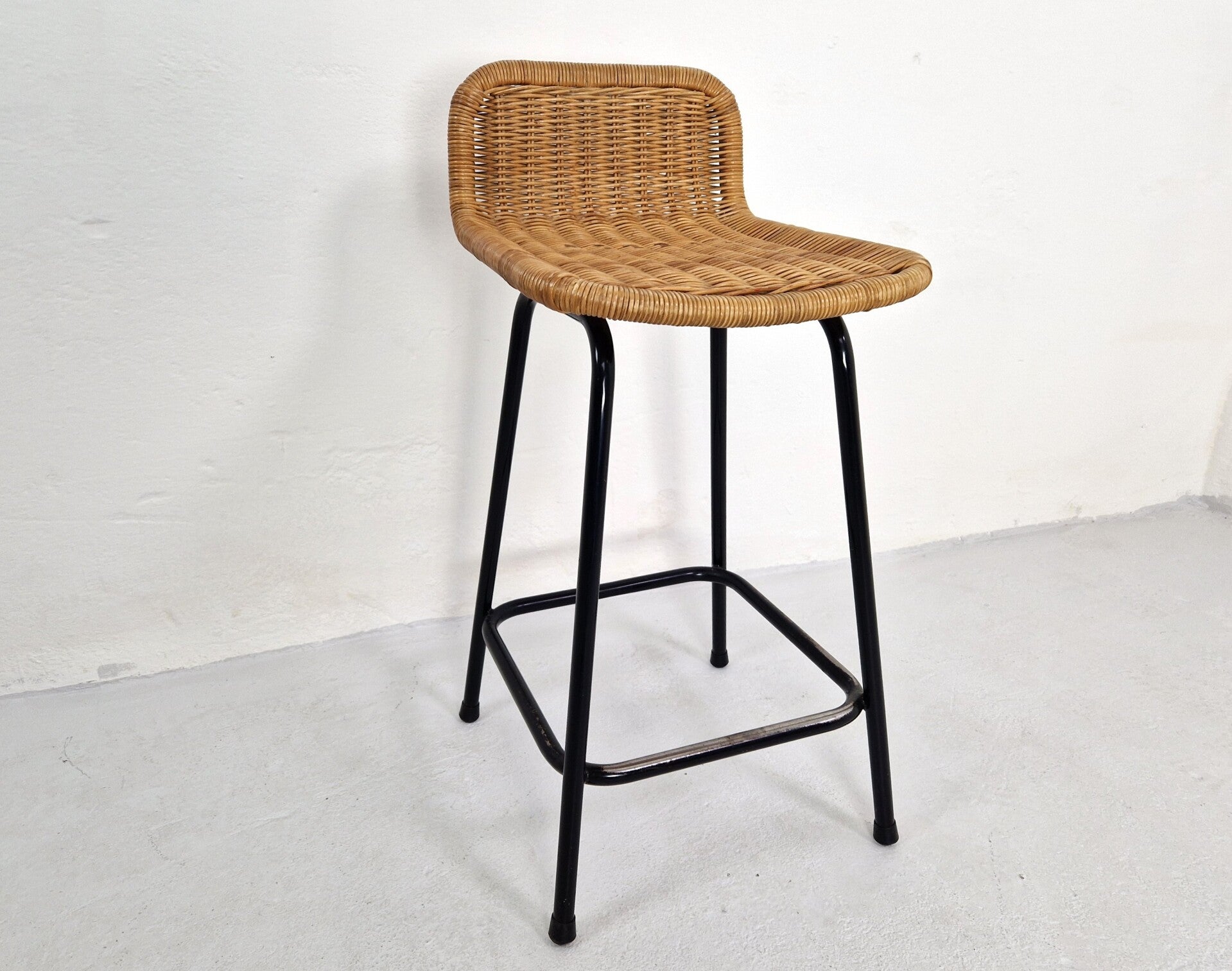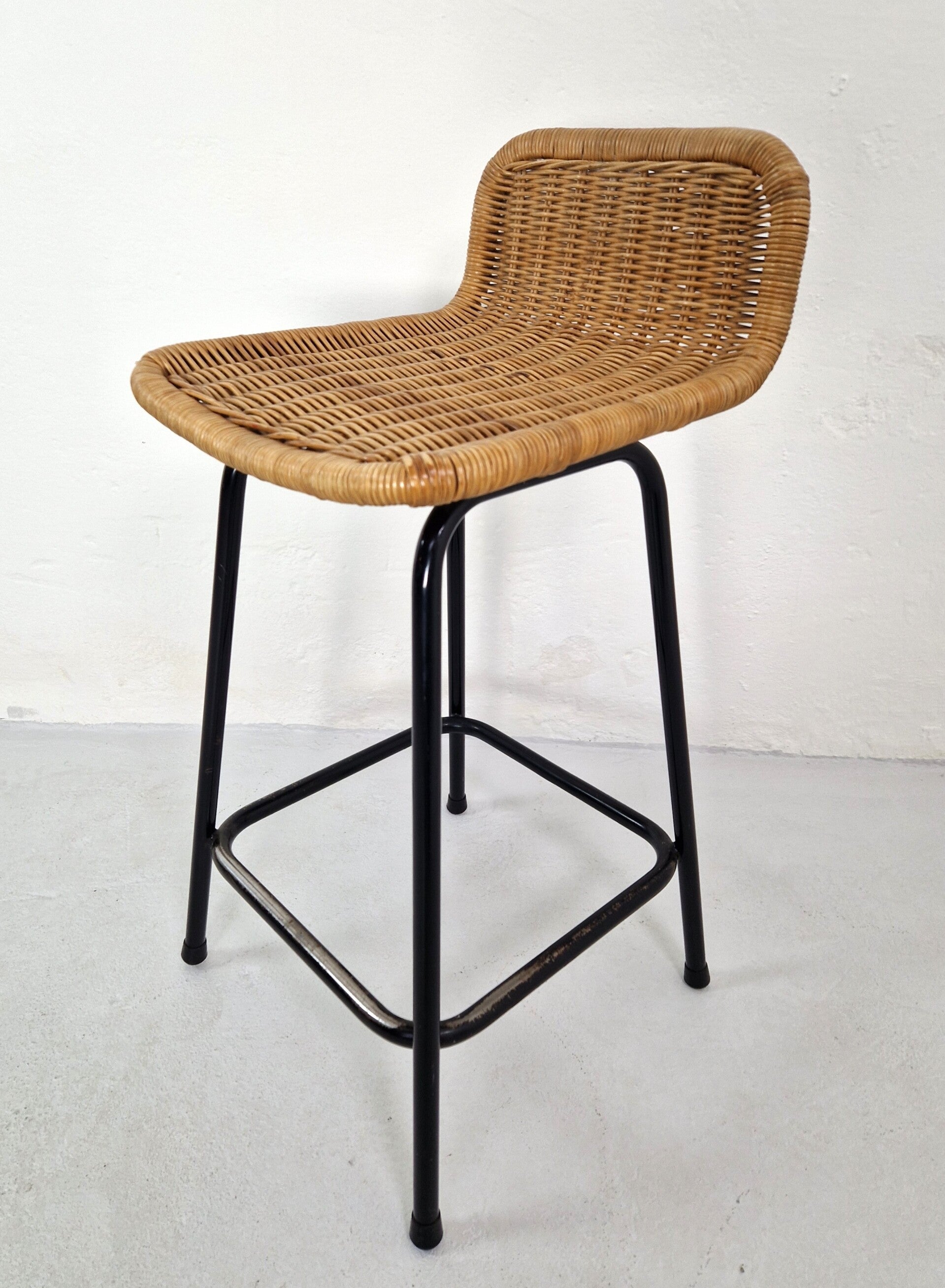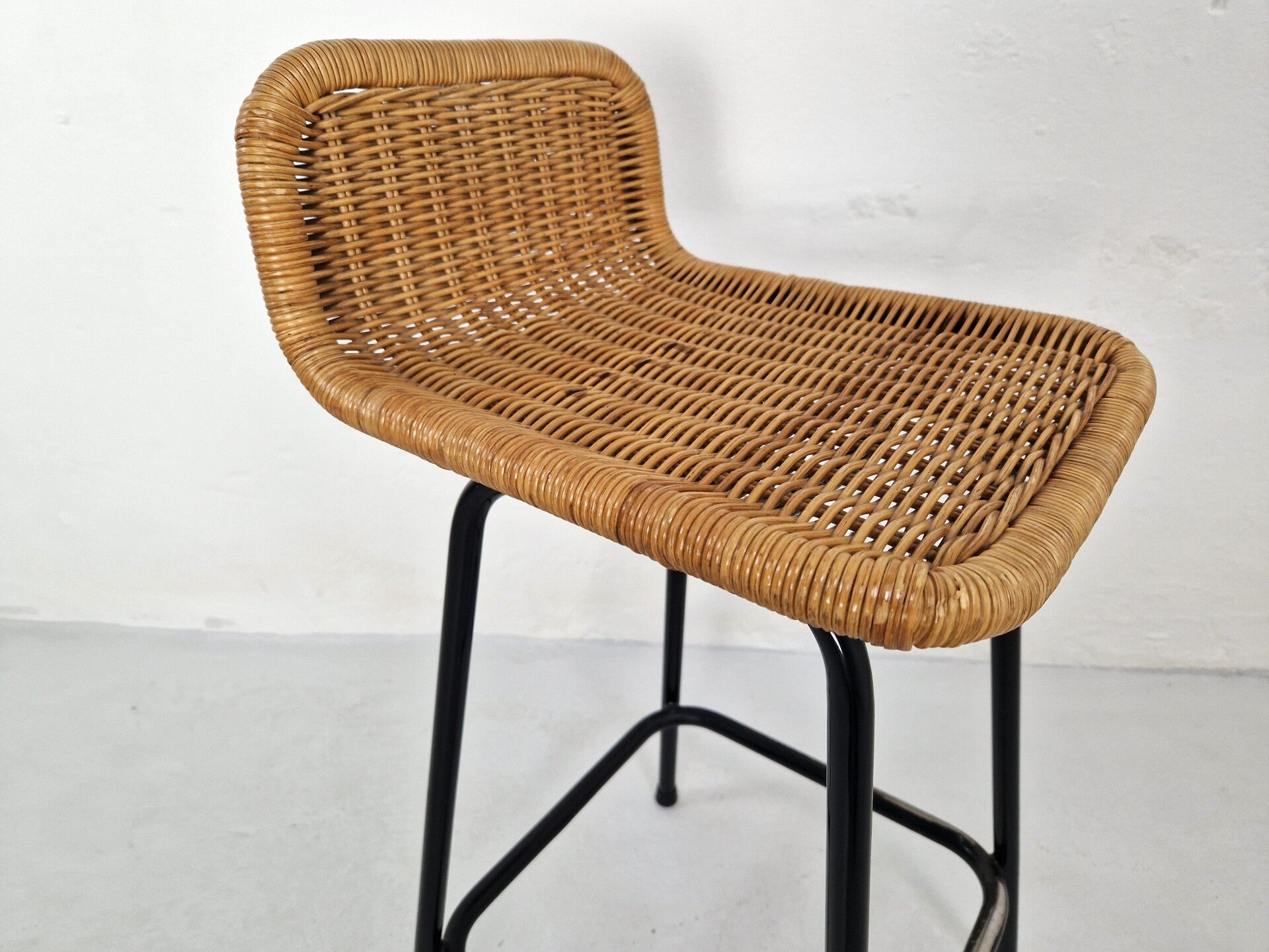 Beautiful vintage bar stool by Rohé Noordwolde and designer Dirk van Sliedregt. This version is the slightly lower version. Excellent condition with some minor discoloration and wear to the paint on the footrest. It will last for years to come. A superb piece of Dutch design.