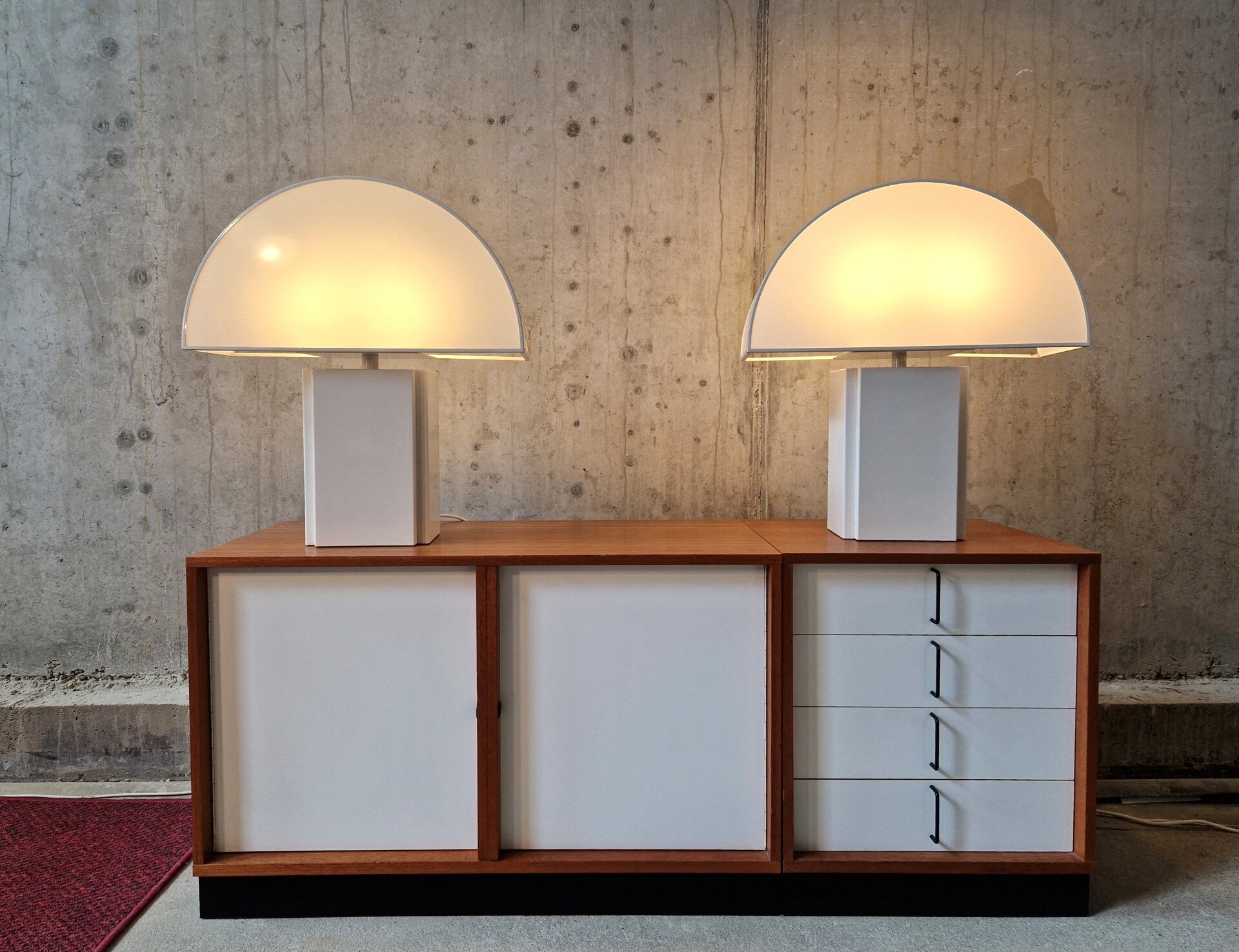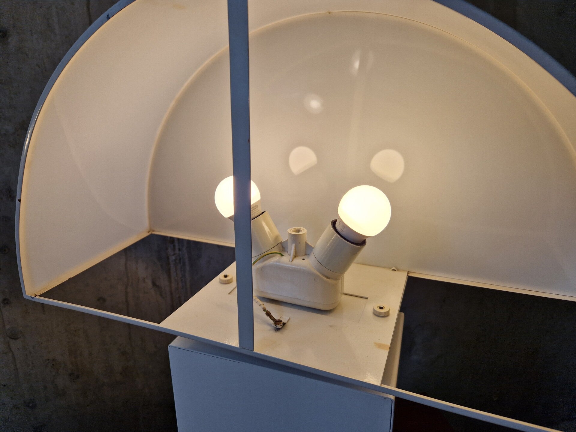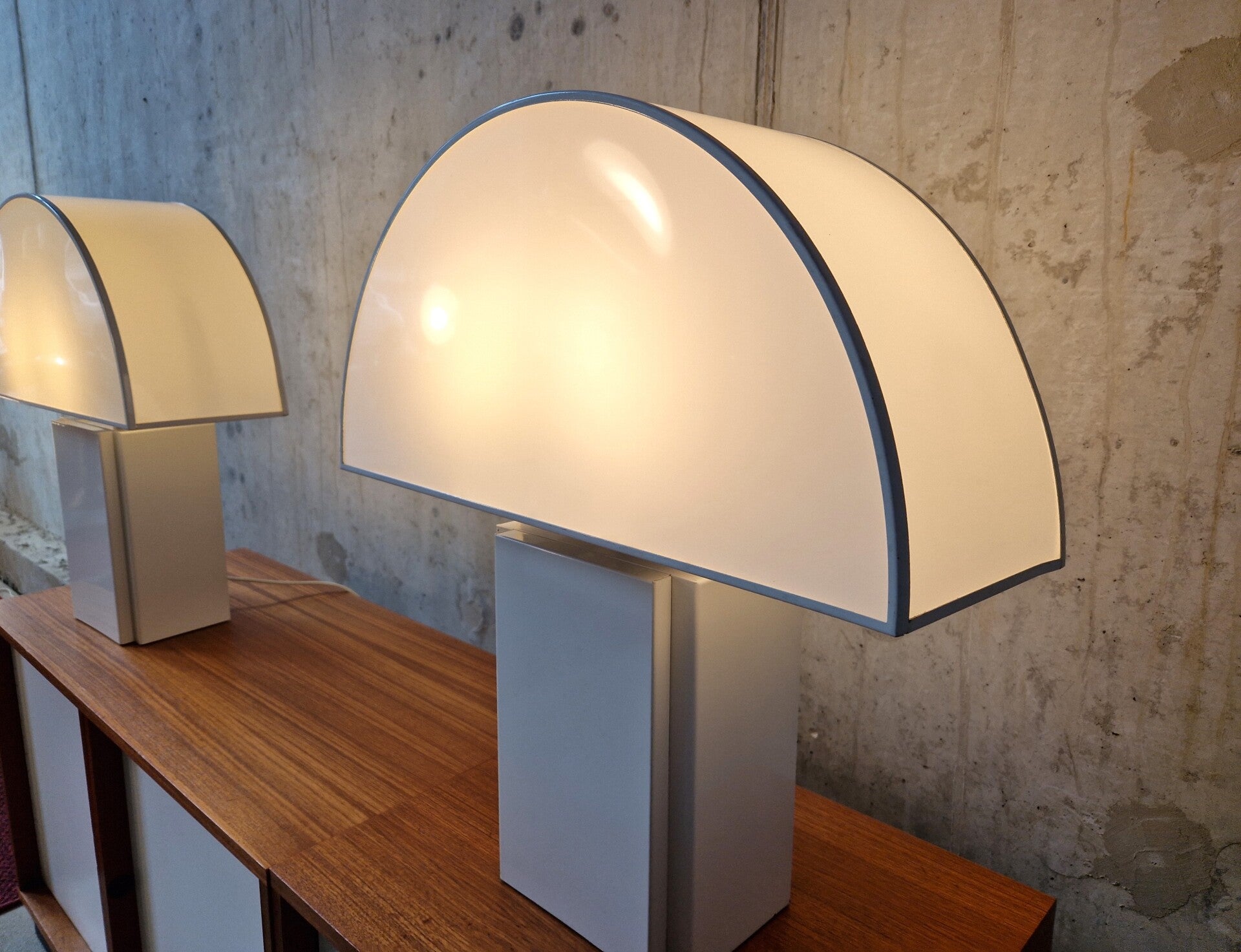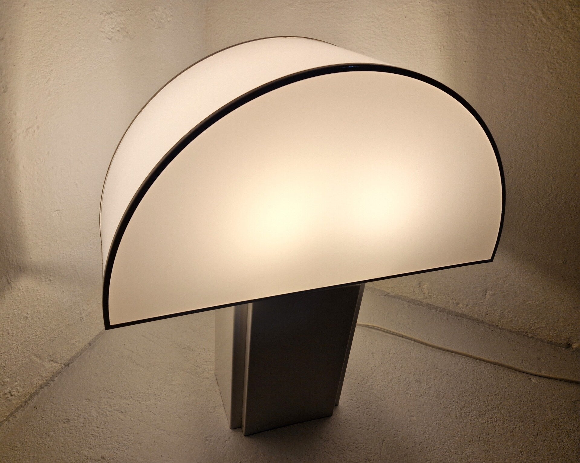 We are selling two of these XL table lights, designed by Harvey Guzzini for ED in the 1970s. The 'half moon' lights are called 'Olympe' and really have that understated Italian cool. Open back for easy acces and a great size!