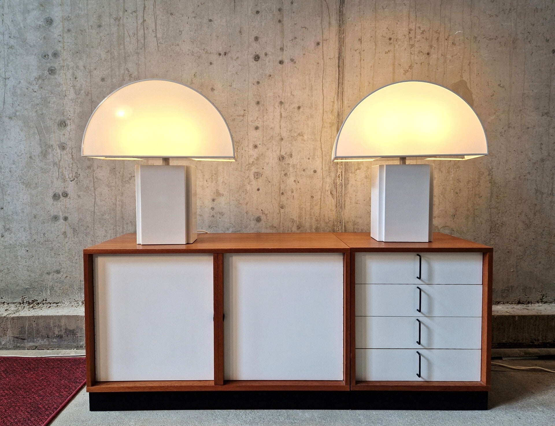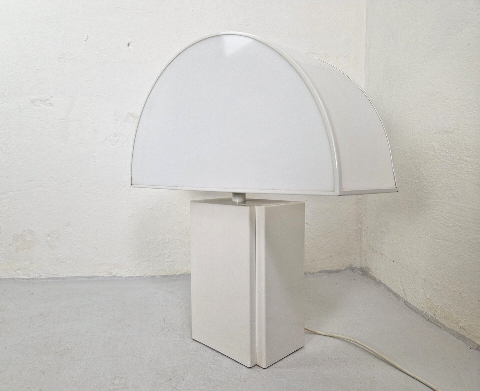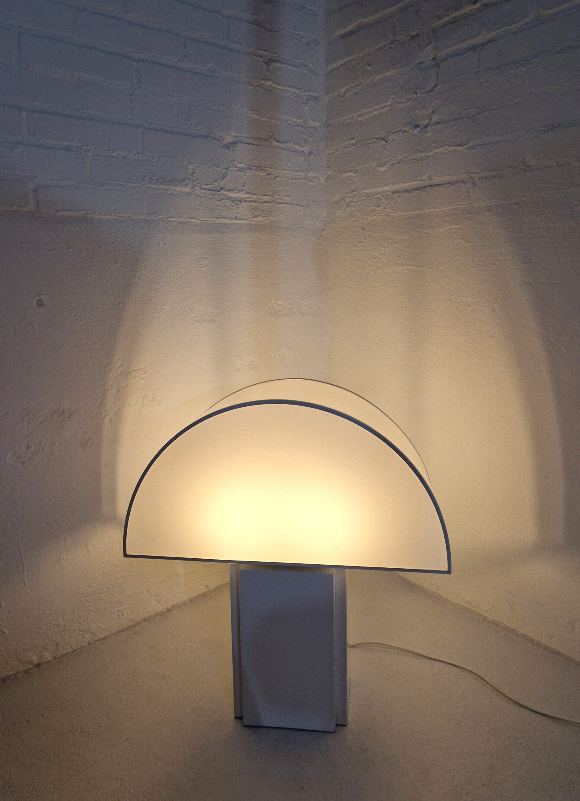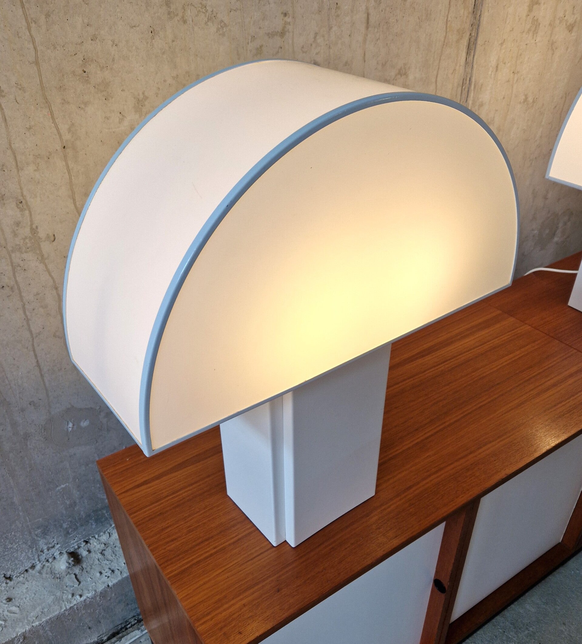 We are selling two of these XL table lights, designed by Harvey Guzzini for ED in the 1970s. The 'half moon' lights are called 'Olympe' and really have that understated Italian cool. Open back for easy acces and a great size!
