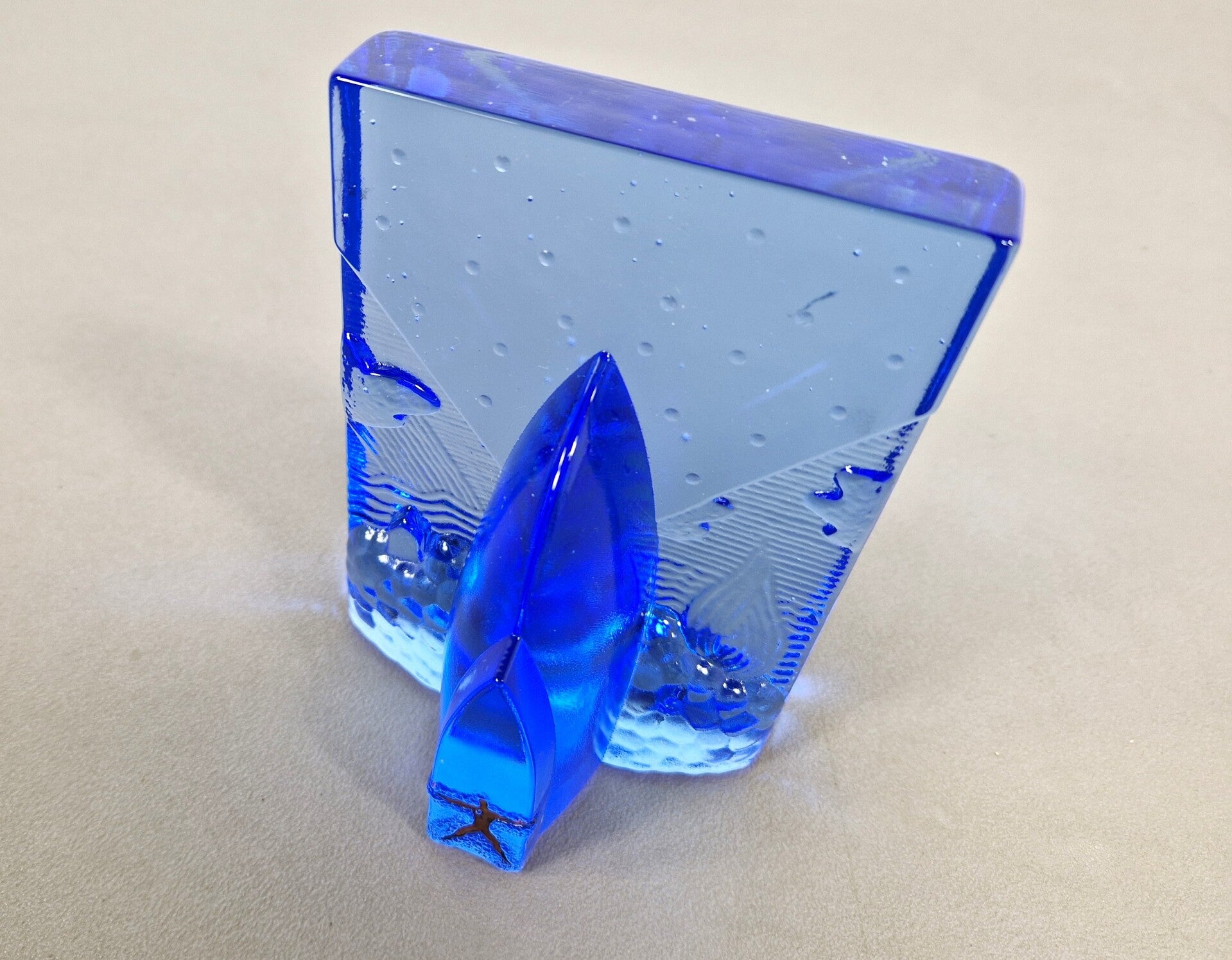 Really cool and collectible art glass piece by Bertil Vallien for Kosta Boda. It is called 'Elements' from the blues series and in great condition, including signature, number and original sticker. Catches the light beautifully!