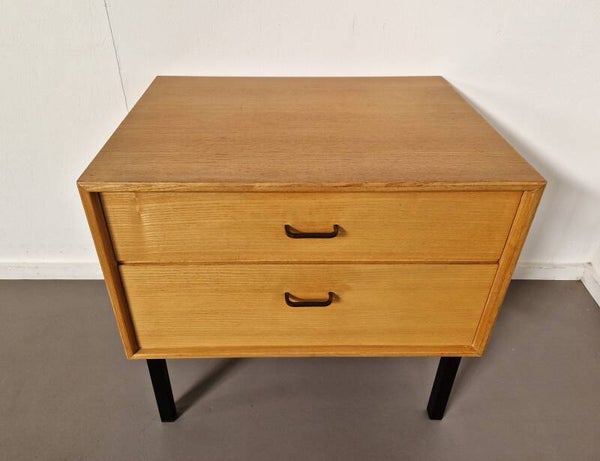 Super cool small chest of drawers from the 1960s by the Dutch Kempkes Furniture Factory. It can serve as a cabinet, but of course also as a bedside table. Good vintage condition with small signs of use consistent with its age.